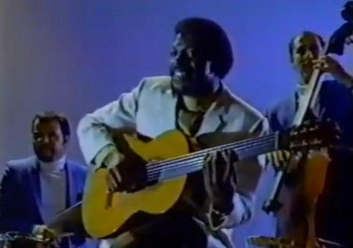 And Betty was bang-on right; at one point, Mundy says he is going to hear “two of my good friends”, Luiz Bonfá and Bola Sete, play in a club and there they are. They play three numbers and I’ll admit I can’t identify the first that’s being played when Mundy greets Luiz. I don’t think I’ve heard it before. Al goes in to use the phone and when he comes back out I’m pretty sure I hear them run down “Corcovado”, perhaps the most beautiful song ever written. Much later, Bola Sete steps out front and smiles while guest star Teri Garr dances appealingly. Scouring the internet for info on this episode, all I could find were two entries that list Bola Sete’s compositions and “It Takes a Thief Cues” appears, leading me to believe that is the title of this number and Bola was simply riffing and he knocked this tune out for the episode.