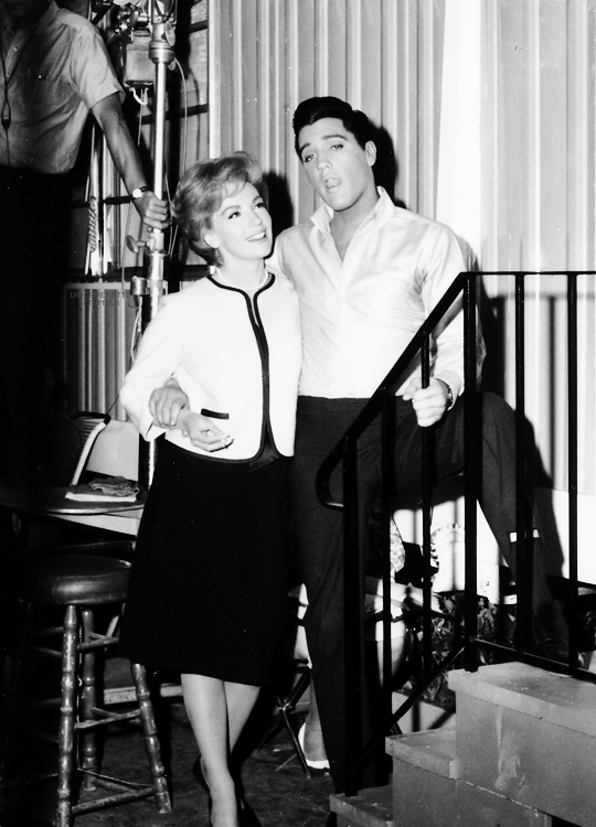 Elvis Presley, Joan O’Brien, Gary Lockwood, Vicky Tiu, Yvonne Craig, Kurt Russell, Red West and Charlie Hodge.