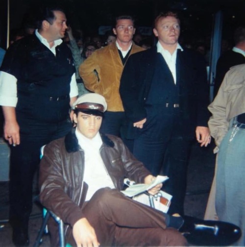 Elvis on set surrounded by the boys, including Red West, right.