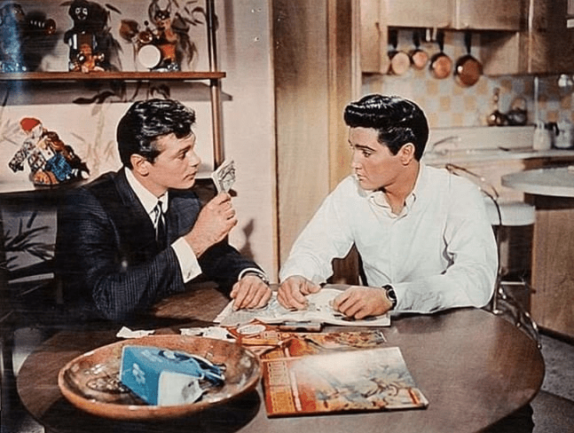 “One Broken Heart for Sale” may be one of the best King Movie songs of the early Sixties. Written by the formidable team of Otis Blackwell and Winfield Scott, the tune is sung in the courtyard of the trailer park where Mike and Danny have taken up residence. Comically, a quartet of neighbours are so taken with Mike’s song that the four old codgers gather around and sing a little back-up, perhaps recalling the old days on the village green when they were four little lambs who had lost their way and were batting their eyes at the sorority girls. The tune is excellent and deserves not to be lumped in with other “movie songs”. This song was released as a single but inexplicably the version released was a full minute shorter than originally recorded. This plus equally baffling poor sonics on the record resulted in this being the first Elvis Presley single to not reached the Top Ten; it peaked at #11.