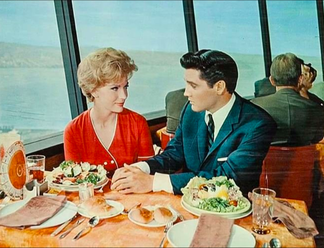 Meanwhile in Elvis World: This film is on the precipice for Presley, personally and professionally. At this point in his life, Elvis, according to Peter Guralnick “felt frustrated and bored, tired of the same situations, the same conversations, the small dramas of petty jealousy, endlessly repeated, that seemed to make up his daily life”. The gang – the so-called “Memphis Mafia” – was splintering with guys coming and going randomly. Some had realized they must break away if they were going to forge careers for themselves. Elvis injected some new blood into the group when he invited some newcomers to join him for shooting in Seattle. Priscilla was coming to Graceland for an extended visit and arrived in Memphis while Elvis was away. King was excited to get home to see her but this also soon turned sour as Cilla began to bristle about her boredom, the school she hated attending and the tight social and financial leash that skeptical Vernon was keeping her on. Once World’s Fair was released, though, Elvis brightened as evidenced by an interview he gave at the time. A local reporter spotted Elvis and Cilla on E’s motorcycle and scored a chat with Presley during which King said his latest film was “one of the best” he had made. But Elvis’ mood at this time may suggest in part that he knew the writing was on the wall where his film career was concerned. While Blue Hawaii had set the template, it was followed by Follow That Dream and Kid Galahad, quality departures both. After World’s Fair, he wouldn’t make a non-formula film for another five years.