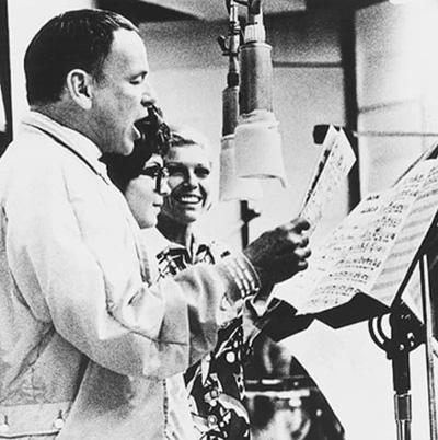12 Songs of Christmas (1964) and The Sinatra Family Wish You a Merry Christmas (1968) — Frank Sinatra never again entered the studio to record a solo Christmas record but he did make more seasonal music. Sinatra made two curious albums with Papa Bing and Fred Waring and The Pennsylvanians; both of them were the last albums I had to find and buy to complete my Sinatra Album Collection. America, I Hear You Singing (also ’64) has little to recommend it, really. The patriotic album was a tribute to recently slain president John F. Kennedy and is perhaps too ephemeral to be enjoyed today. It’s available on iTunes. 12 Songs of Christmas is a fine record that I had to buy on vinyl from eBay – something I’ve only done once before when I bought Dean Martin’s Once in a While album to complete my Dino collection.