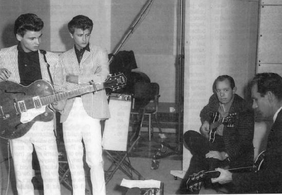 Their debut hit was written by the husband and wife team of Felice and Boudleaux Bryant, formidable songwriters who would go on to pen many hits for the Everly Brothers and others. Working with the Bryants, the Everlys would begin a run on the charts that is equal to almost any other performer from this era. Their distinctive close harmony vocals and their ringing acoustic guitar sound was an ear-pleasing blend of country & western and pop that was sometimes rockabilly and sometimes sweet and tender ballad singing. The Bryants provided the Everlys with their next single and another smash. “Wake Up, Little Susie” was issued in the spring of ’57 and rocketed to the top of the charts, becoming the first of the boys’ three Pop chart-toppers. In addition to their lovely voices, these first two hits bear distinctive guitar riffs provided by Don. On “Bye Bye Love”, the chopping opening riff was an afterthought, tacked on after the song had been recorded. The low rumbling beginning of “Wake Up” actually provided Don with an award years later. In 2019, the Musicians Hall of Fame gave Don the very first “Iconic Riff” award for his work on this song. Quite something when you consider that mediocre guitarist Chuck Berry is legendary for his distinctive guitar riffs.