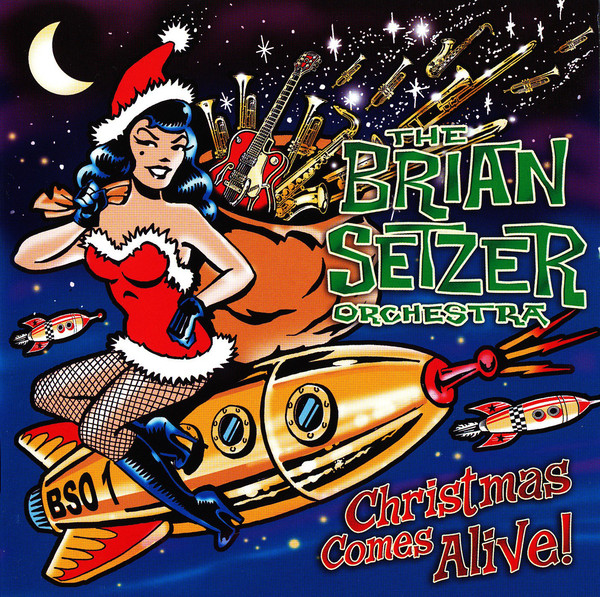 Dig That Crazy Christmas (2005) — With his second Christmas album inside of 3 years, Setzer added more retro jump blues-type Christmas tunes to the orchestra’s songbook. The album features “Dig That Crazy Santa Claus”, another from the pen of Leon RenĂ©, “Zat You Santa Claus?”, a comical tune that had been done so well by Louis Armstrong and “Cool Yule”, another seasonal nugget from Satchmo that was written by Steve Allen. Brian also presents his first originals on this record. “Hey Santa!” is a fireball with lyrics that paint Santa as a buddy, a cat who will do you a solid and who enjoys a fast ride; “Hey, Santa! Well, are you goin’ to Atlanta? Can I hitch a ride with you, old man? Cause my gal lives in Dixieland”. The other original also brands St. Nick as something of a speed freak. A mid-tempo grinder, “Santa Drives a Hot Rod” features some more great lyrics by Setzer; “I do believe that Santa’s sleigh got a big block Chevrolet…” Speaking of lyrics, Brian scores points for adding words to Glenn Miller’s immortal “In the Mood” and turning it into “Gettin’ in the Mood (for Christmas)”. Lots of great lyrical sentiment, then, but the highlight is mostly an instrumental.