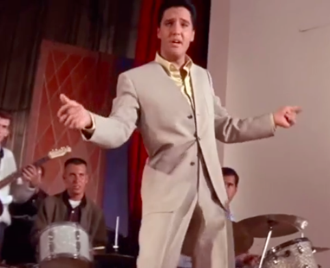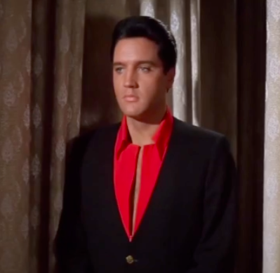 The Look: It pains me to say it but Elvis Presley looks only typically dazzling in Viva Las Vegas. It seems to me that 1964 and ’65 find him in a transition period of sorts where his physical appearance in the movies is concerned. In 1963’s It Happened at the World’s Fair, he looks magnificent; a mature version of the feral beast he was in 1956/57. By 1967’s Clambake, he looked spent, his sojourn in the wilderness apparently taking a toll on his good looks. But in between it looks to me like the artifice was being propped up, so to speak. What to do with the famous head of hair, for example? The glory of his ’50s pompadour wouldn’t work in the Beatle era but King’s not going to sport a mop top. The compromise seems to have been a helmet of sorts. His hair in this film is very black – as he liked it – and doesn’t move. Donfeld – born Don Feld – handled the wardrobe for Viva Las Vegas, as he did for many other films, earning four Oscar nominations along the way. His work can be seen in Wild in the Country, with Presley, Days of Wine and Roses (1962) and Under the Yum Yum Tree (1963). His sparkling clothes were worn by the boys in Robin and the 7 Hoods (1964) and he designed the bonkers costumes in 1987’s Spaceballs. But perhaps he didn’t know what to do with King. As he rarely did in movies or real life, Elvis wears a regular suit and tie in this film. A grey one is sharp but unremarkable. A couple jackets, including a striking yellow one for the “What’d I Say” number, look good on him and feature the influence of the Beatles in that they lack lapels. And if I could only chat with Don and ask him about the shirt he made for King to wear during the performance of the title track. It looks…odd. Broken, even. My son says it looks like Don wasn’t done with it!