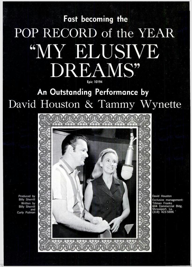 Here today I need to talk about a seriously depressing country tune, a song that actually gets me angry. Although I like it. If that makes sense. “My Elusive Dreams” was written by two men. Billy Sherrill (1936 – 2015) was a prolific songwriter and producer who was born in Phil Campbell, Alabama (Pop. in 1940 – 533). Sherrill is known mostly for being one of the architects of Nashville’s countrypolitan sound and found success with Tammy Wynette (he helped choose her stage name) and George Jones. He co-wrote many songs with and for the artists he worked with such as “Almost Persuaded”, “Stand By Your Man” and “The Most Beautiful Girl in the World”.