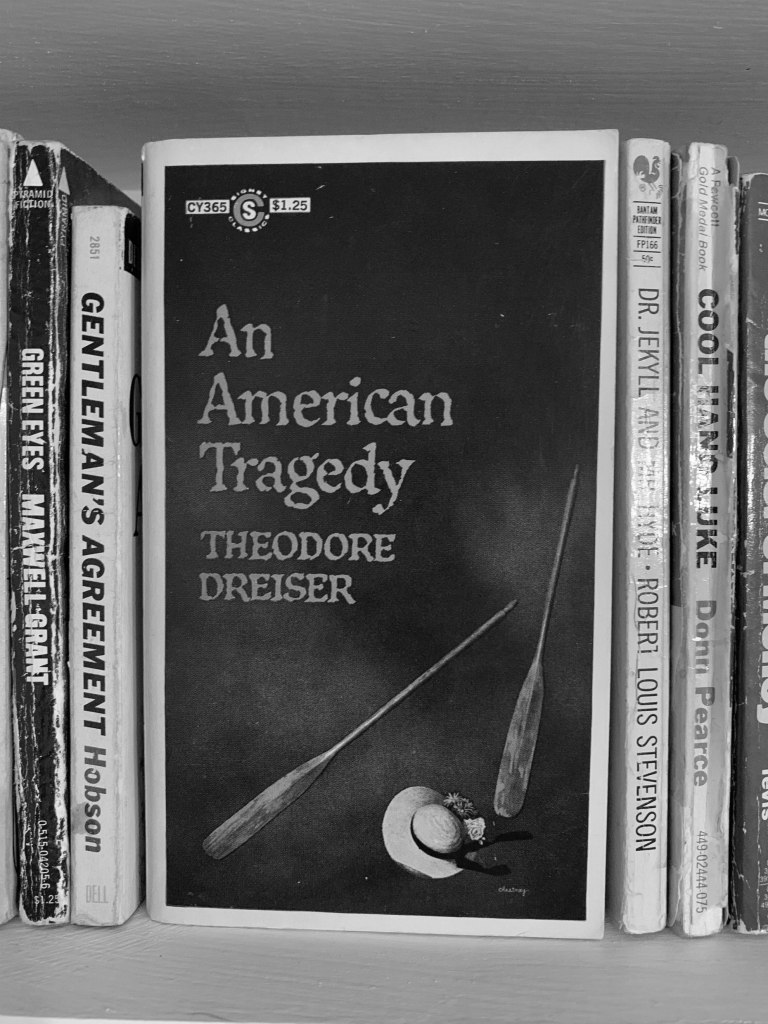 I can’t remember what came first. It’s possible I may have caught A Place in the Sun (1951) on television as a youth. It became one of the first movies I ever bought when I picked it up on VHS and it also was one of the first three movies that ever made me cry. I was a teenager when I first really sat and watched it and it had a major effect on me, a feeling that was heightened when I tackled the novel it was based on. I took on Theodore Dreiser’s An American Tragedy (1925) while still a young person although its bulk at 800+ pages was daunting.