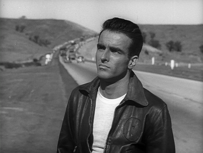 Contrasts are seen right from the outset of the film. During the opening titles, George strolls along a highway trying to thumb a ride. His clothes are simple, sturdy and dark, his leather jacket black. He is dejected but his countenance seems to lift as he notices a prominent car driving by. It is driven by a beautiful young girl he will soon meet, Angela, and the car is a sparkling white. But George is left on the side of the road, isolated, until he finally scores a ride; in a dilapidated truck driven by a genial farmer-type.