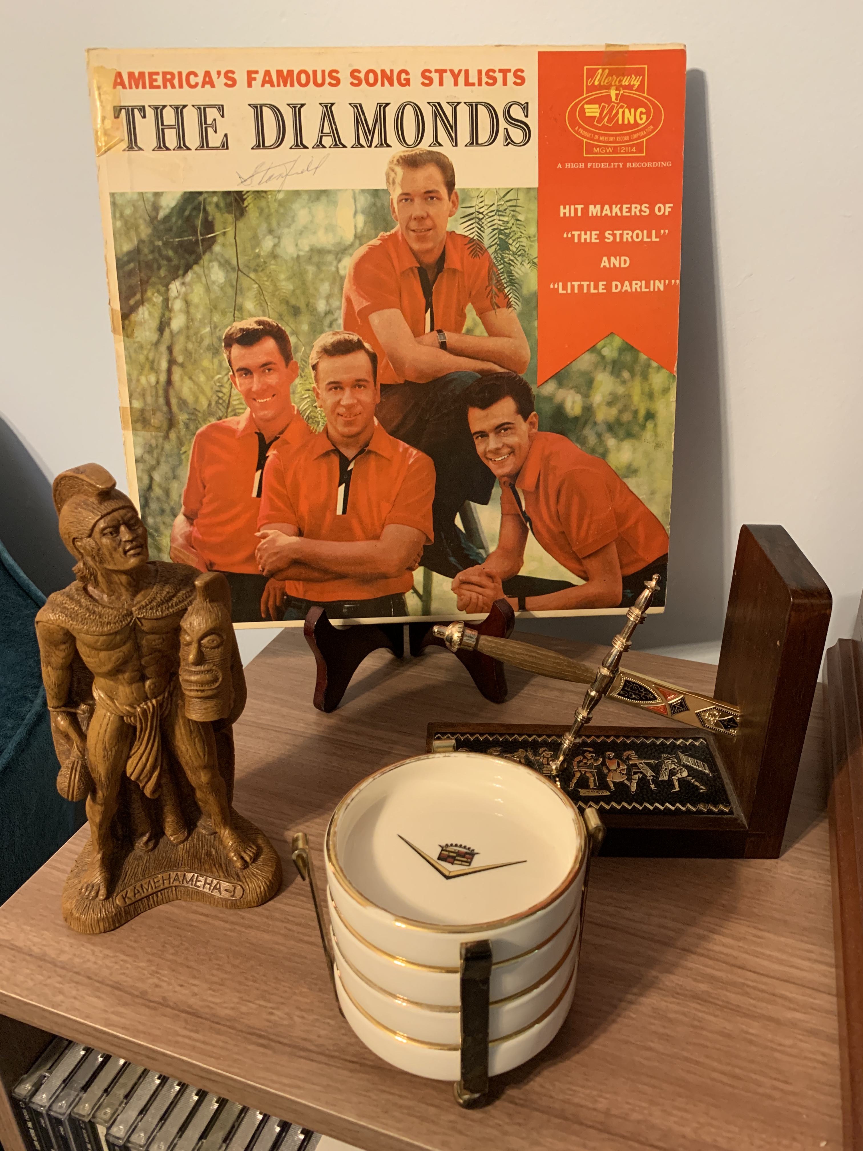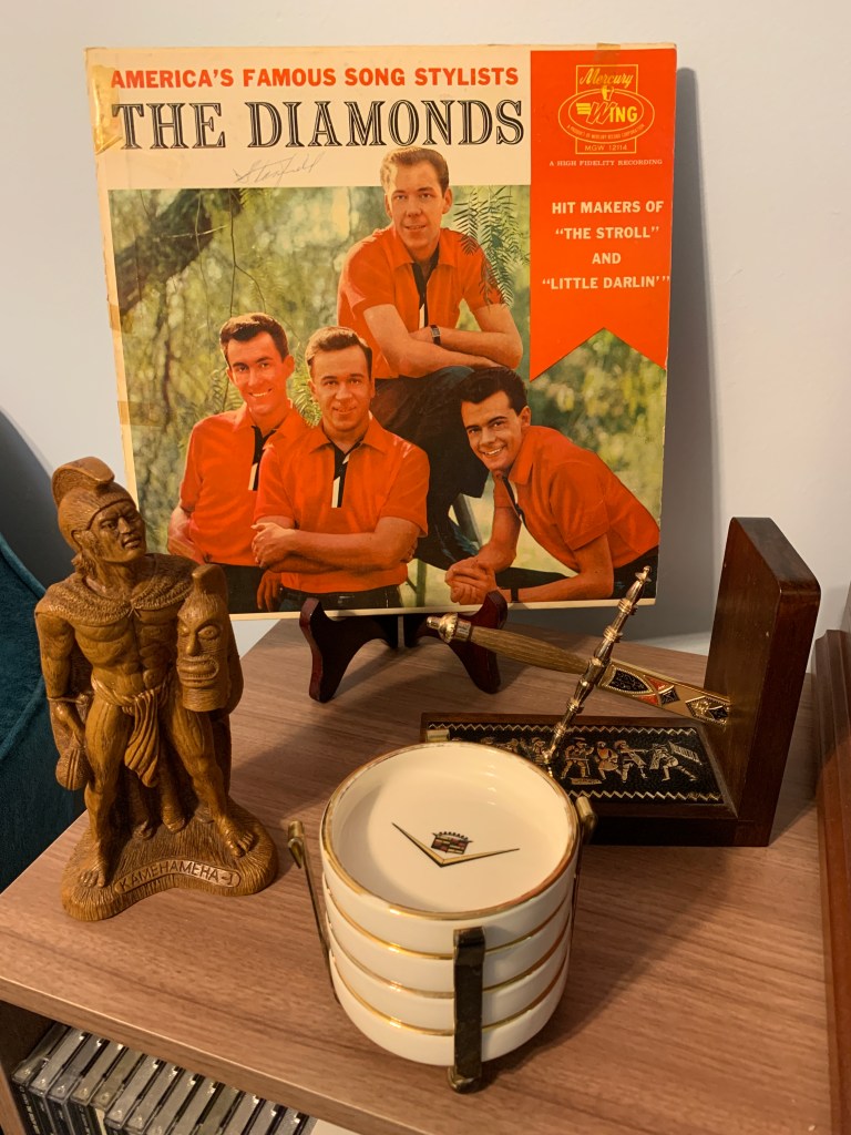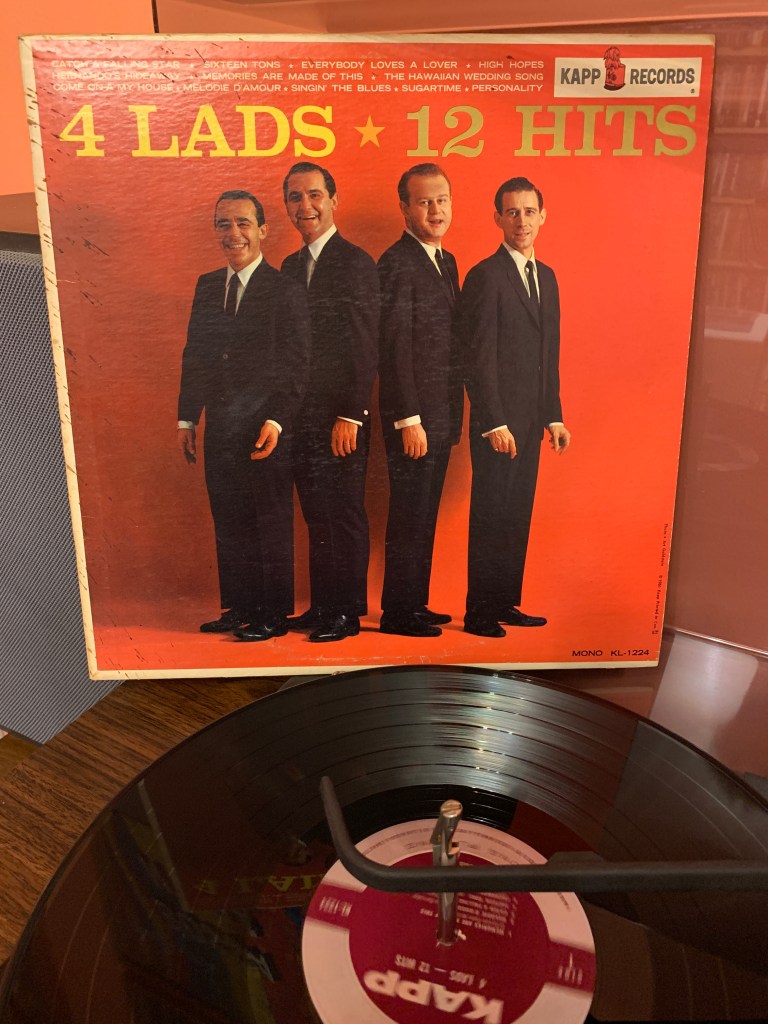 Striking out on their own, they scored Top 40 pop hits through 1952 and 1953 with songs like “The Mocking Bird” (#23) and “Somebody Loves Me” (#22). They struck paydirt the following year with a Top Ten hit, “Skokiaan”, which lead up to their most successful run. After releasing three singles that did not chart at all, the Four Lads issued “Moments to Remember” on July 18, 1955. One of my favourite things to hear is an old song about old times. As we today reminisce about the 1950’s, it’s charming to hear a song from that time that was also waxing nostalgic for a previous era. “Moments to Remember” is a song about just that; looking back fondly to memories of the past, something that is the very essence of what we do at Your Home for Vintage Leisure. DJ Bill Randle was again instrumental in a Canadian group’s career as he plugged this tune on the radio which drove it up to #2 on the US pop charts giving the Four Lads their first gold record.