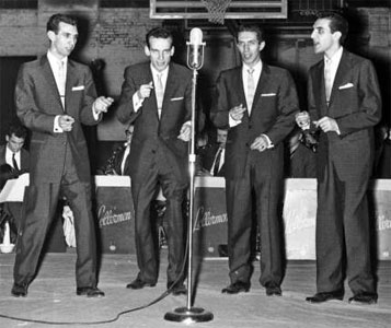 The Four Lads – Toronto, Ontario // Connie Codarini and Bernie Toorish found themselves a duo after Rudi Maugeri and John Perkins – future Crew-Cuts – bailed on them for something as silly as their education. Undaunted, the lads recruited Jimmie Arnold and Frankie Busseri and settled on the name the Four Lads when they learned the Four Dukes was already taken. The four boys went to New York where they were recruited by Columbia Records’ famed A&R man, Mitch Miller, to sing back-up for Johnnie Ray. Subsequently, the Four Lads can be heard on Ray’s huge hits “Cry” and “The Little White Cloud That Cried”.