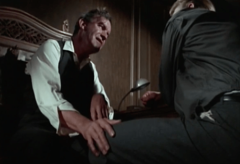 1. I have yet to make it entirely through this film. Like the cast, though. Perhaps totally unnoticed is Crahan Denton. Thanks for including a still of him. He was an incredible actor…riveting in The Great St. Louis Bank Robbery (1959).
