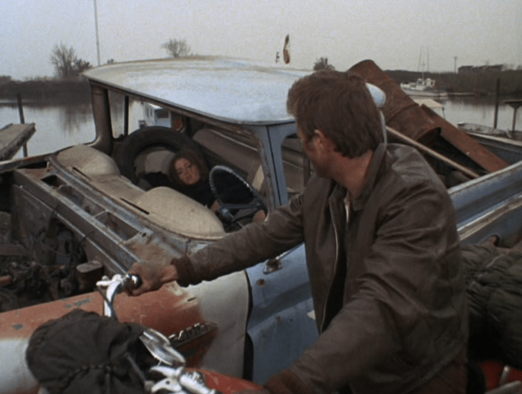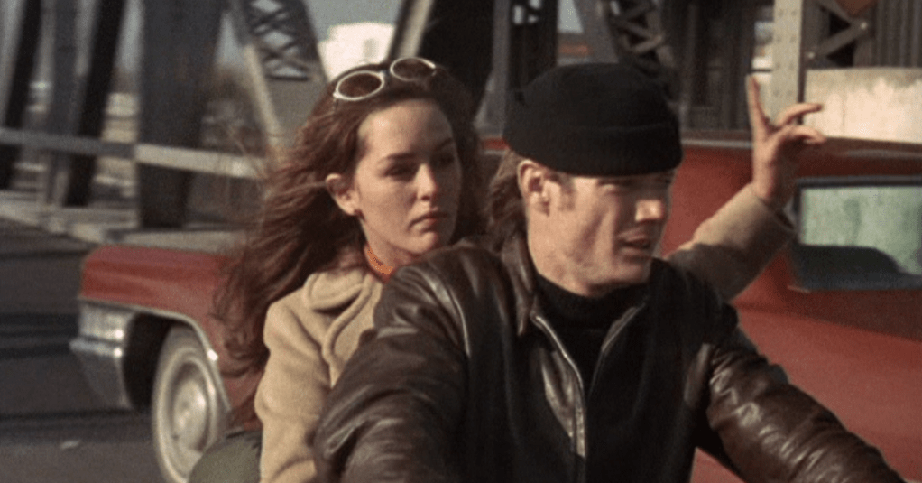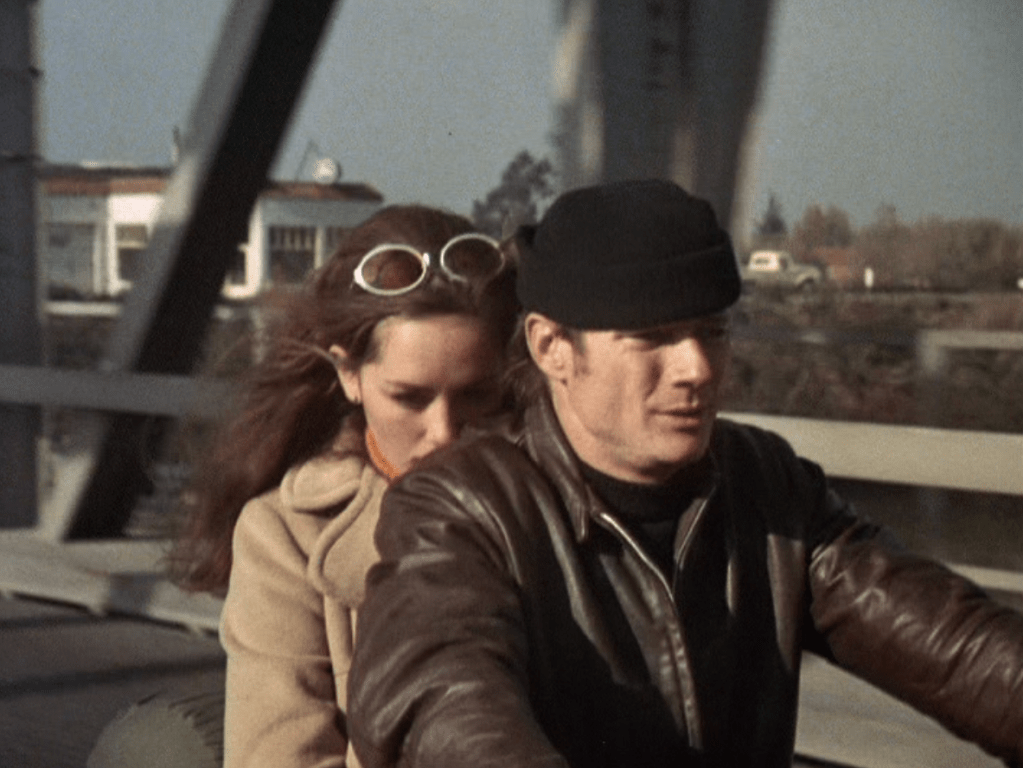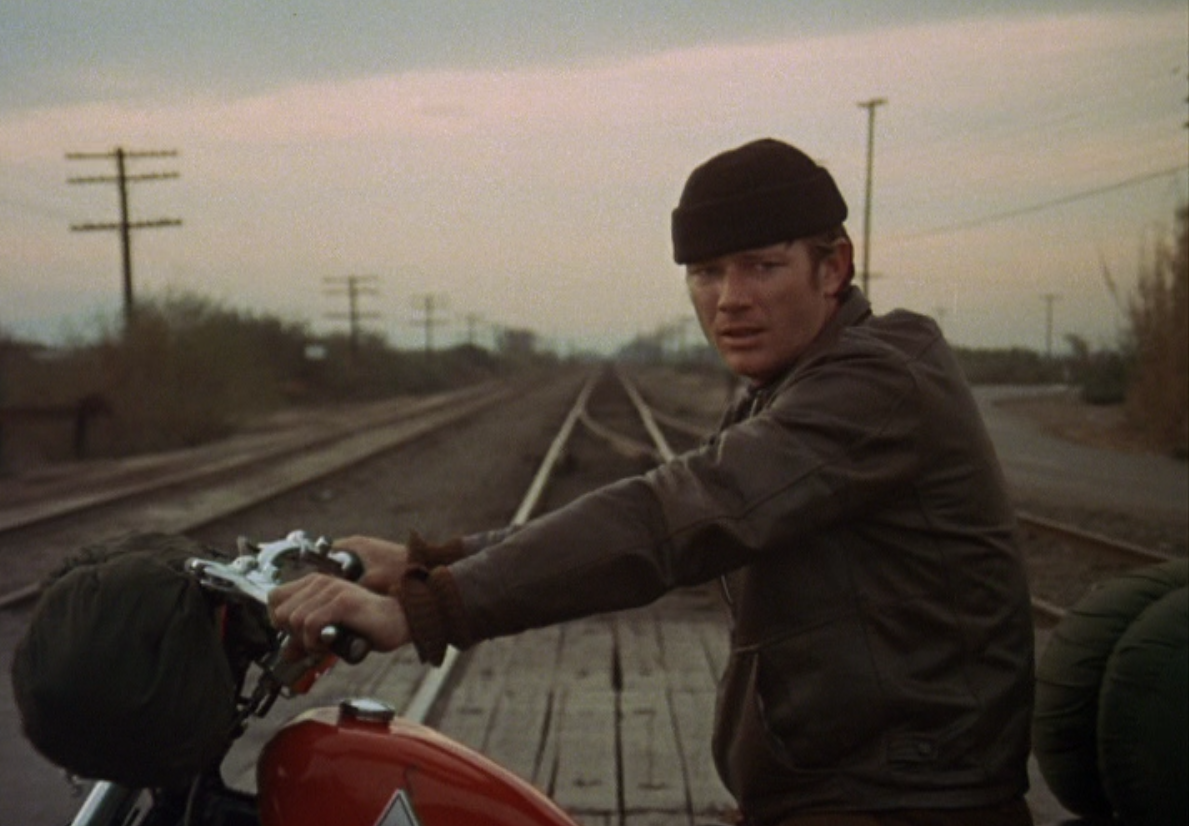 What we have here is a sneaky-good film about a relationship. And about the pivot points of life. The times when you realize what has gone before cannot continue – but what lies ahead? There are many lovely moments in the movie. At first, Temple is rigid and behaves poorly. Their first night on the road, Jim sets her up to sleep under cover. When it starts raining, he climbs in beside her, a move she misinterprets and she lashes out, sending him running. Once she realizes he simply wanted to stay dry, she exhibits her first display of sweetness; “Come in out of the rain…please.” Another moment is when Jim takes her to a train staton and buys her a ticket back home. He leaves her there and drives off – only to return to her. “I’ve nowhere to go”, she says and gets back on the bike. It’s wonderful to see people learning about each other on the fly like this. After Jim wins some money racing his bike, he takes Temple to a store and splurges on a dress for her, saying simply “I wanna see what you’d look like in a dress”. Near the end of the film, Temple is – without even thinking about it – signalling with her arm when they make a turn on the bike.