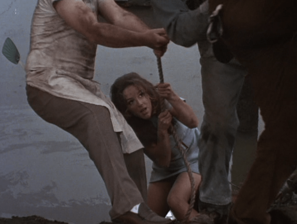 A cathartic moment comes when Temple helps to drag the bike out of the river. In doing so, she ascends to a state of something resembling grace. Up until now, we can easily imagine her at the country club that her parents have been members of for years. We can see her there with Tommy, some Ivy League twerp who is simply going into the family business because he couldn’t chart his own path if you gave him a chart and said “here’s your path”. Something may have snapped in Temple to drive her from her wedding day but she is no doubt a Hillsborough girl, used to the finer things. To see her so determined to do her part to bring the motorcycle out of the water – to take something buried, broken and pull it out of the depths, to restore something – is delightful.
