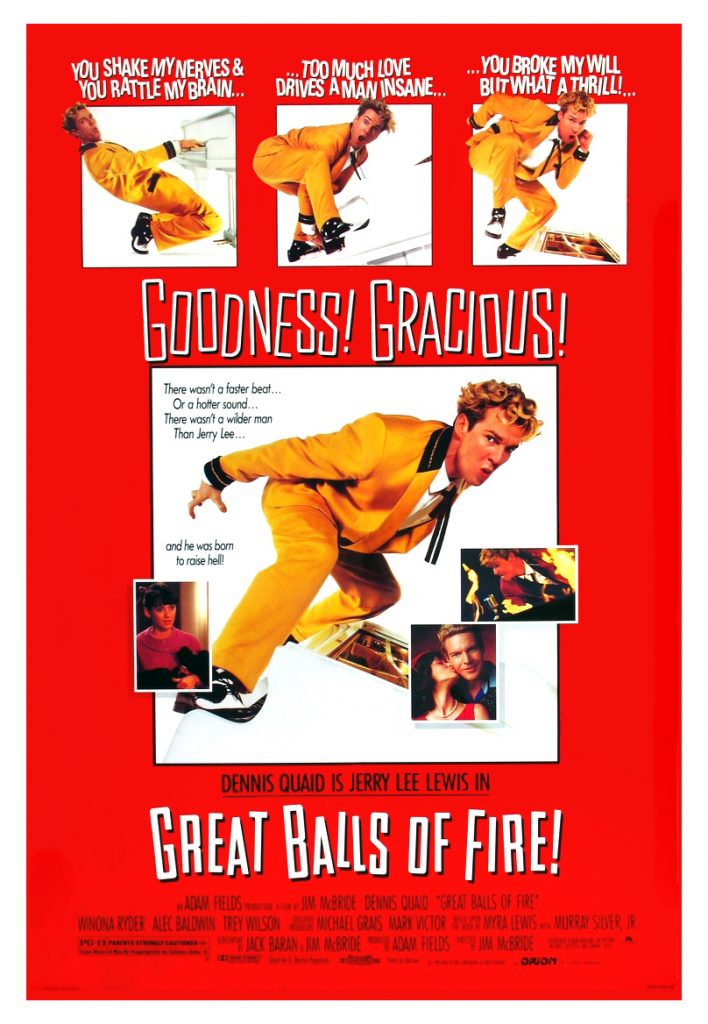 And Jerry Lee Lewis may have been a jerk. But – as we see in the scene in which he is asked to write a letter of apology to the fans for publication in Billboard magazine – he was uncompromising and could not be swayed from his path; no matter how reckless he was or how ill-fated that path appeared. You’ll get a general telling of the true story from Great Balls of Fire! and you’ll get a fun film that looks and sounds sensational.