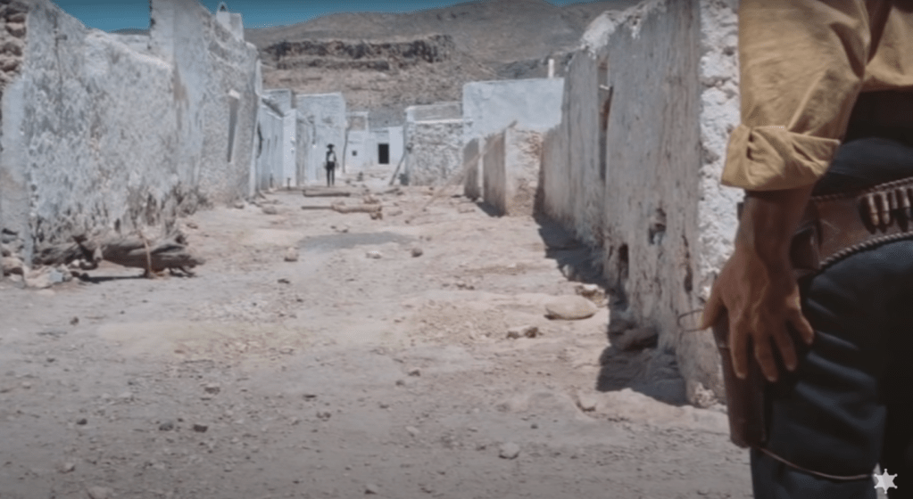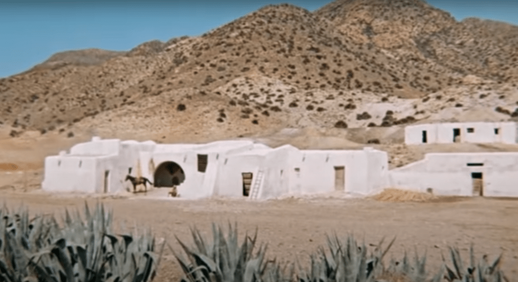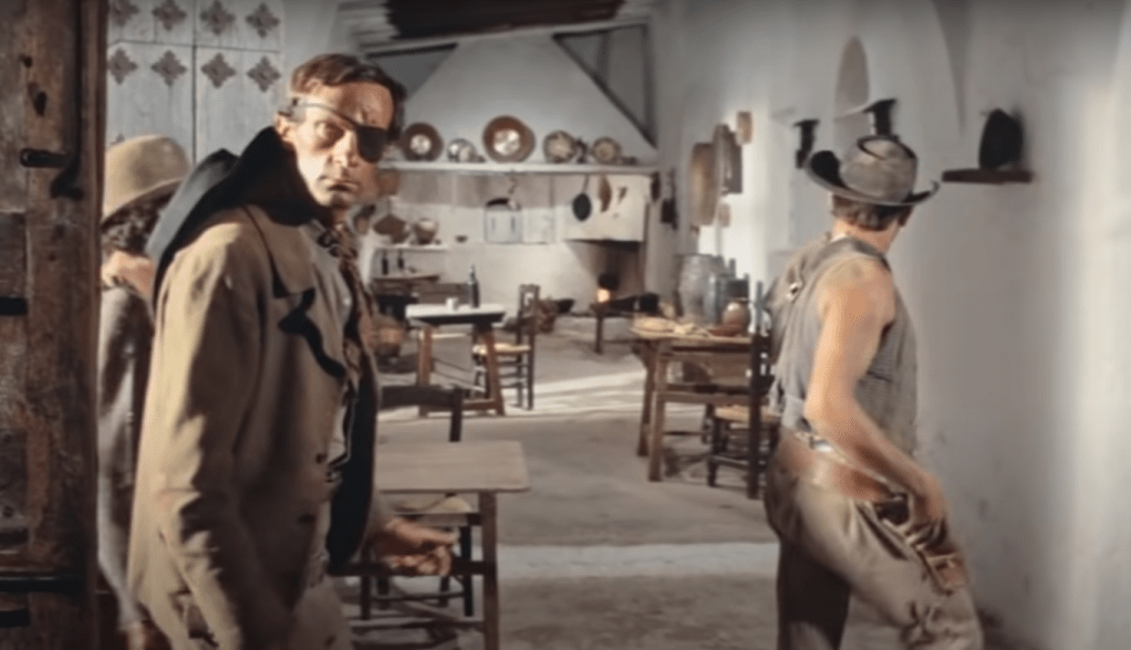Johnny Yuma is a good find as it contains all the elements we’ve come to expect from spaghetti westerns. The movie was shot in Andalucia, Spain and the visuals are sumptuous. The story has the drama and the menace prevalent in the best of these films and it has that “cool factor” in spades. It helps that it was shot in part in a little whitewashed adobe town seemingly in the middle of nowhere. The outside and the interior of this little village looks awfully familiar and may have been used in an Eastwood western or two.