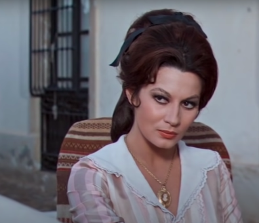 Rosalba Neri (b. 1939) was prolific in her own country and not only appeared in spaghetti westerns but also EuroSpy films and giallo erotic horror films. She also can be seen in El Cid (1961).