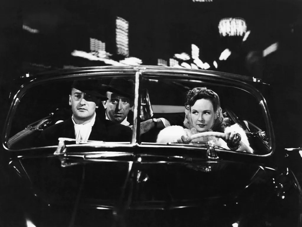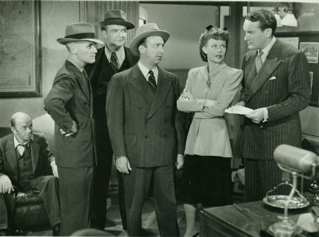 Speaking of the Falcon’s relationship with film noir, not only was Takes Over based on Chandler, but the next film in the series, The Falcon Strikes Back (1943), was directed by Edward Dmytryk. At the time a director of B movies, some that were broadly successful, Dmytryk would soon be promoted to bigger projects and make his name with noirs like Murder, My Sweet, based on – once again – Farewell, My Lovely, and Crossfire (1947). Strikes Back keeps many of the same faces on board and adds Harriet Hilliard, Mrs. Ozzie Nelson.