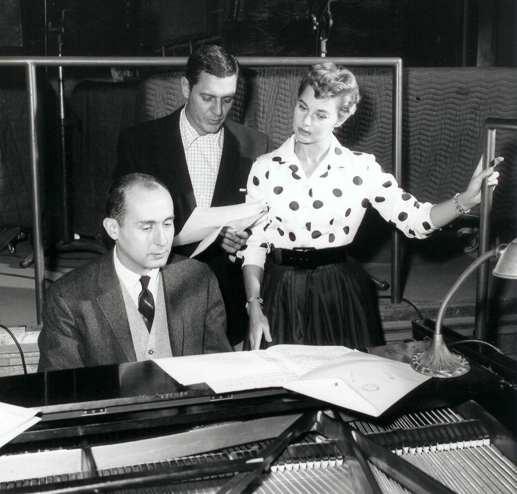 Henry details his first small steps in the business working for Artie Shaw and Tex Beneke’s Glenn Miller band and he says he made a point to study all composers so that he would gain a versatility that would equip him to write music for any film moment. Odd that he says he had a nickname at the time; “Weirdo”. So earned because of his quirky sense of humour. Again, hard to reconcile that with the refined Hank you think you know but it’s a nice addition to his persona. He gives much credit to his longtime wife Ginny who was a prolific studio singer who had sang with Mel Tormé. Ginny was connected with Hollywood types and helped Henry get his first job working on radio with a man who became Hank’s good friend and “idol”, David Rose. Henry shares a funny story involving Rose. Later when the two friends were wealthy and both owned yachts, they were out sailing each on their own craft. As Rose approached Mancini going in the opposite direction, Rose raised his glass and yelled to Hank “Aren’t you glad you practiced, Henry?”