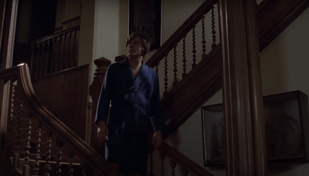 Nick arrives back in London as well. His plan is to adjourn to a quiet Surrey estate to record his comeback album. He’s met at the airport by pretty Linda Everett (Stephenson) who works for Nick’s manager, Webster Jones (Doyle). The live-in caretakers at the estate seem quiet but efficiently friendly and Nick settles down to work. He is menaced in the night by sounds of a young woman weeping and by other horrific sights and sounds. Nick is thought to be losing his faculties and is institutionalized for a time. When he returns to the manor though, it becomes quite clear that the horrors of the house are very real.