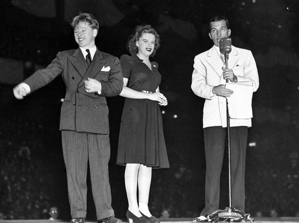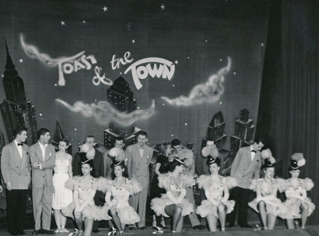 Toast of the Town debuted in 1948. CBS was hedging its bets, springing for only primitive sets and providing a limited talent budget. This pic is from the first show and depicts Jerry Lewis at left. Martin and Lewis were booked on the show and paid $200.