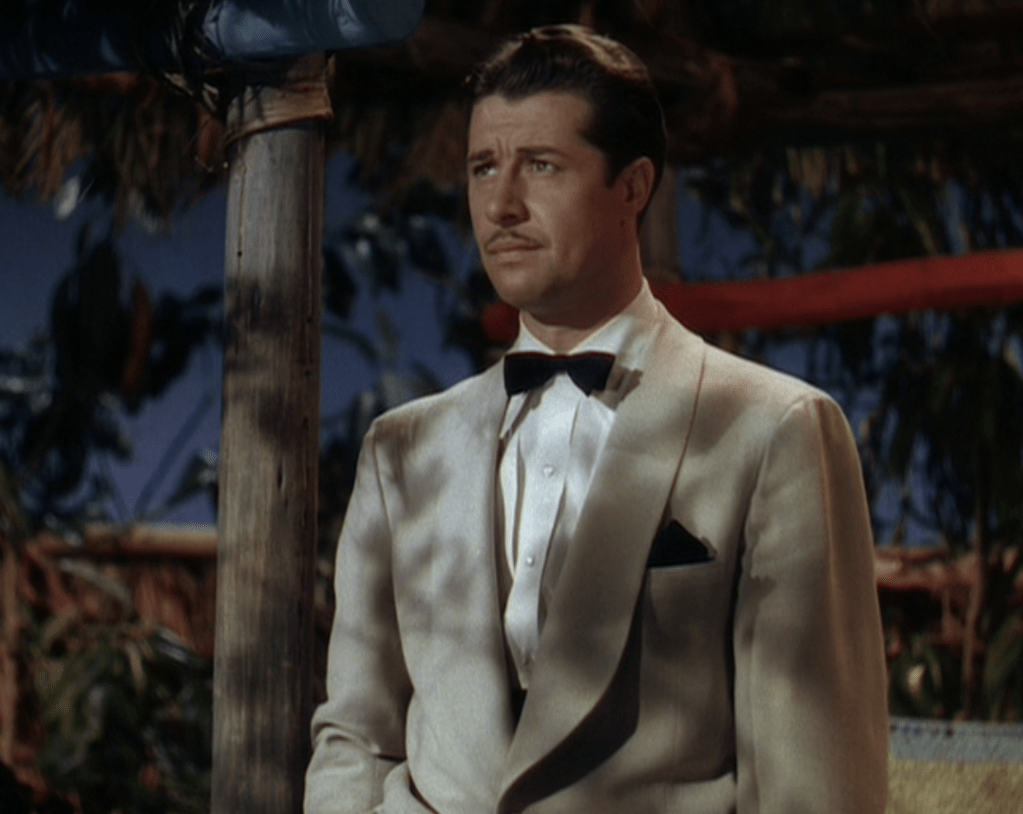 Don Ameche buys the whole picture, though, when he crashes Jeff’s island where the lovebirds have gone to plan their wedding. Knowing his presence will rattle both Jeff and Kay, he comes in both guns blazing, spraying smiles and good cheer all over the joint. “Well, I finally made it. You been worried about me?” Phil takes charge of the place, declaring himself Jeff’s best man and feigning astonishment that there was any question about the appointment. Phil has been in the driver’s seat but when a honeymoon is planned without his input, Phil is not happy. Everyone thinks Honolulu is a fine idea but “I’m against it!” Phil blurts out, indignant that a decision has been made by someone other than him. My family and I have always found this hilarious and “I’m against it!” has become an inside joke often used between my wife, kids and I. I say I’m watching Moon Over Miami and one of my kids will invariably say “I’m against it!”.