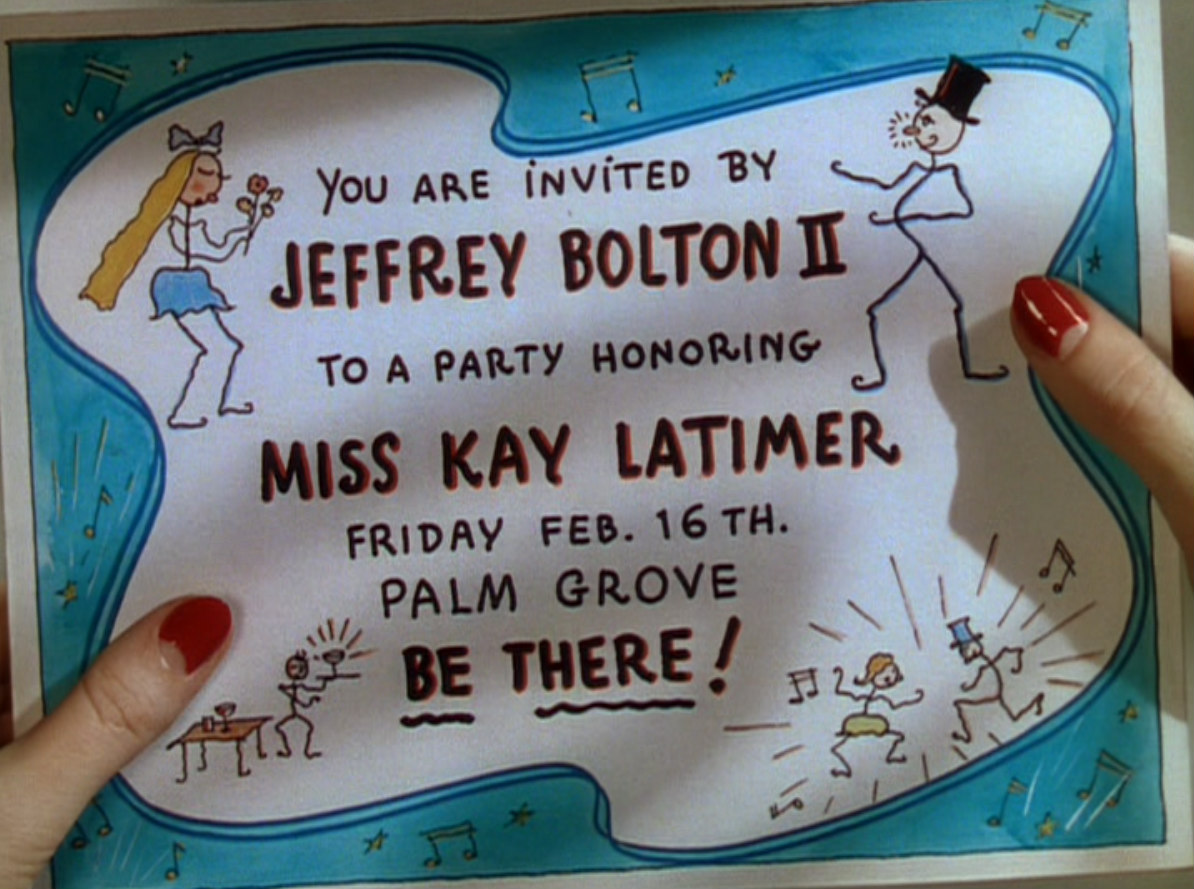 When the Latimer girls double date with the lads, the two playboys are in fine form; you know you’d love to hang out with them yourself. When Kay playfully asks what they want, Jeff comes up with “we want you, the juice of the grape and a good hot dance band” but they both settle for chips and dip for the time being. When Kay announces she’s bringing along her “secretary”, Barbara, the boys bristle, because now one of them has to be separated from Kay. But when Barbara proves a knock-out, Phil throws Jeff nicely under the bus; “I hope you’re ashamed, putting up such a holler against taking her along”.