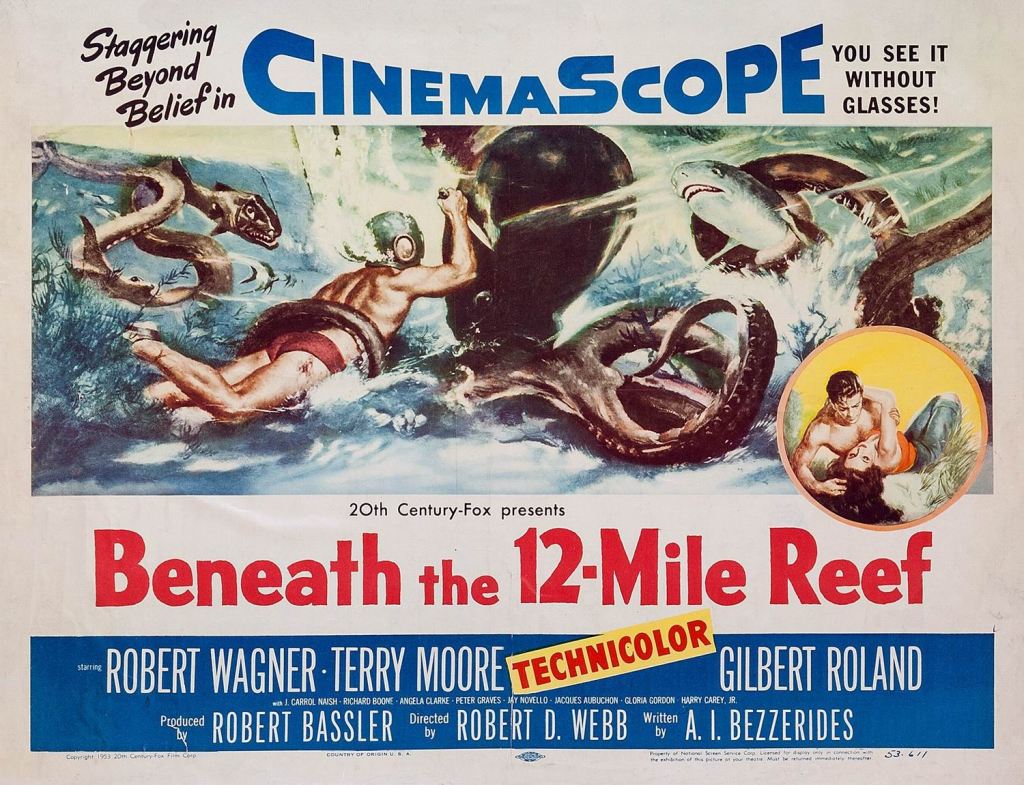 Beneath the 12-Mile Reef has sadly fallen into the public domain. Bad because the prints you are liable to find are poor as are the DVDs; mine is terrible. Good, though, because the film is available for viewing and download almost anywhere; check YouTube and the Internet Archive.