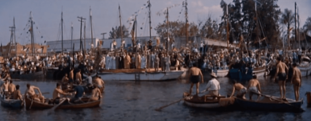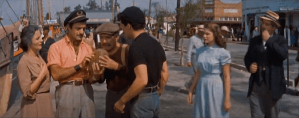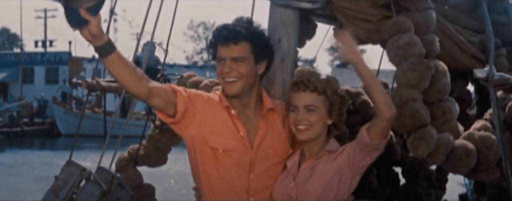 Once you get past RJ playing a Greek and his black, curly hair, this is a fun film. It is perhaps most enjoyable due to the location shoot in Tarpon Springs. And as I’ve mentioned, the film contains a measure of authenticity as it does its best to depict an actual community and the very real industry of sponge fishing. The Epiphany celebration and the young men diving for the cross is still an annual event in Tarpon Springs.