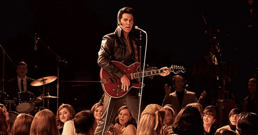 This brings me to Baz Luhrmann’s film Elvis from 2022; one of a plethora of films it seemed would never come out, having suffered delays due to the worldwide pandemic. Speaking of Leonardo DiCaprio, Luhrmann had directed Leo in both Romeo + Juliet (1996) and The Great Gatsby (2013), both highly stylized interpretations of classic stories; which describes actually Luhrmann’s Presley film.