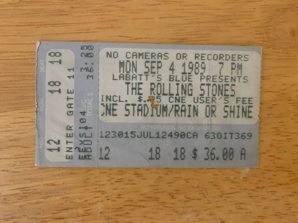 The Steel Wheels/Urban Jungle Tour kicked off on August 12, 1989 with a surprise gig at Toad’s Place in New Haven, Connecticut and then with shows at the old Veteran’s Stadium in Philly that took place two days after the album was released. All 121,897 seats in Toronto’s CNE Stadium were sold out for both the Sunday, September 3rd and Monday, September 4th shows. I went with my older brother and his friends to the show on the 4th, Labour Day. I remember a huge blow-up doll inflating during “Honky Tonk Women”. I stayed over at my brother’s that night and my most sustaining memory of that night has to do with Meat Loaf, actually and not the Rolling Stones. Late that night, laying alone in the dark, I had an experience with the Bat Out of Hell album that was significant and cemented the record in my heart and mind. The next day, I was traveling home and therefore missed the first day of school which screwed me up for the rest of the year, having missed the chance to properly register.