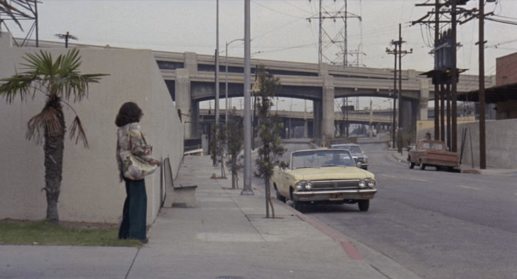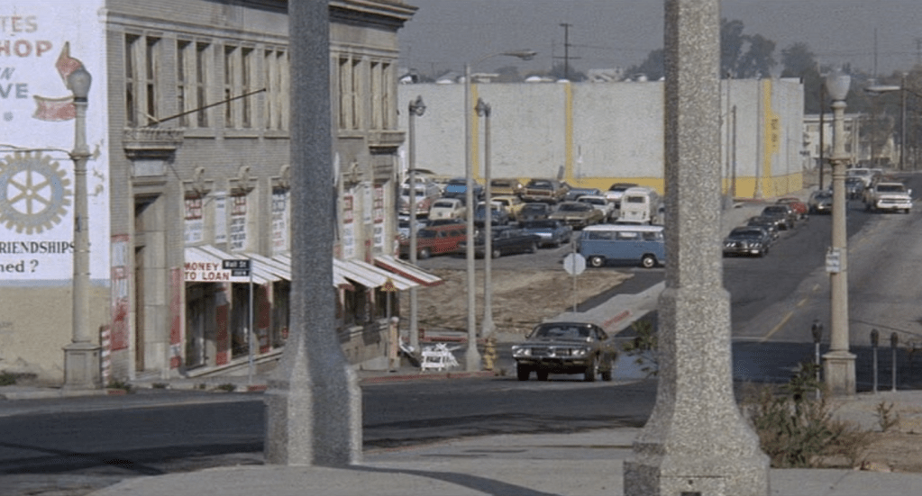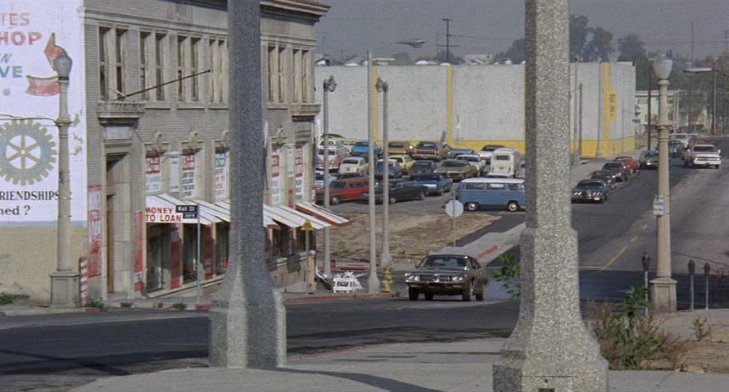 The big appeal of blaxploitation films mostly comes from the physical settings. Much like film noir benefits from practical locations in general and LA specifically, the same applies to many of these urban action films in general and Truck Turner specifically. Truck and Jerry chase Gator’s pink Lincoln through the streets of downtown but also San Pedro. You can see them speed past the old National Cold Storage facility at 210 Center Street and Gator smokes a beautiful Mustang at 612 Jackson Street.