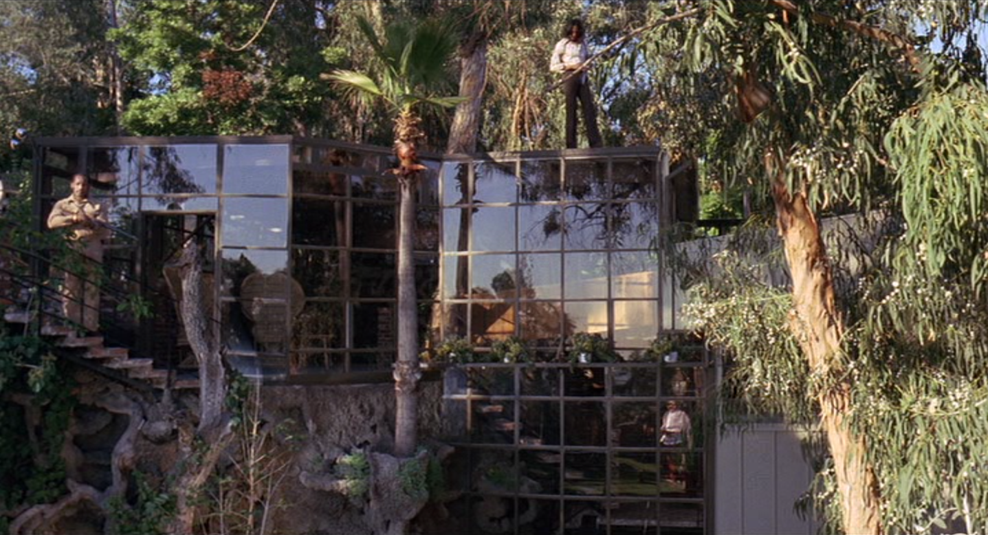 Gator’s interesting crib is out in Silver Lake, a neighbourhood in east-central Los Angeles, and Truck throws down against The Insurance Company at a fascinating home two blocks down from the Hamburger Hamlet on Sunset Blvd. The home at 1235 Sierra Alta Way still stands today. Dorinda’s mansion is an empty home used as a location for many movies.