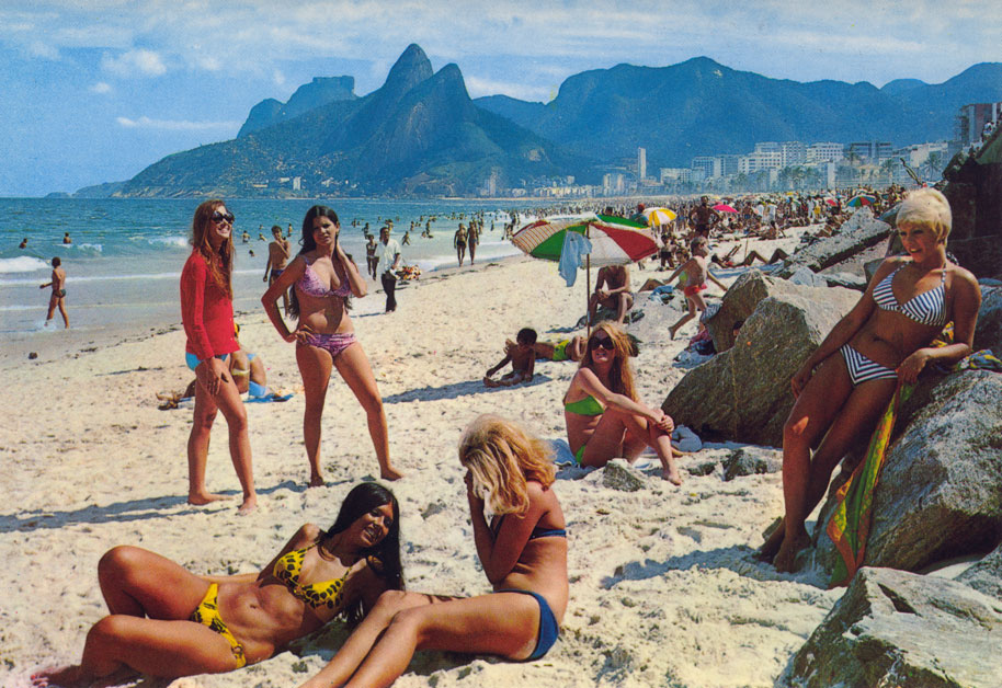 One of the most glaring paradoxes I have encountered in my Vintage Leisure travels is the origin of the name Ipanema. It comes from two words in the Tupi language that combine to mean “worthless water”, “stinking lake” or “bad water”. On the contrary, Ipanema has been called the sexiest beach in the world. Daily, surfers and sunbathers gather there and every Sunday the main thoroughfare adjacent to the beach is closed to allow for foot and bike traffic. Those gathered will often applaud the gorgeous sunsets.