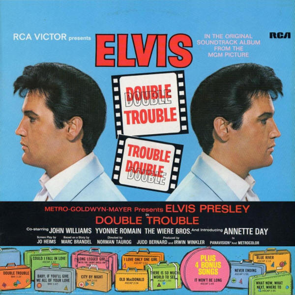 #21 “Double Trouble” (1967) — I think, from here on in, I can say that the title tracks are “good”; no excuses needed. Well, maybe I will say that they are good for movie songs. “Double Trouble” is an energetic tune and it – and “City By Night” – are the only things I can tolerate about this film. This track was actually written by the venerable team of Doc Pomus and Mort Shuman. We are still in the doldrums, though. At this low point in a stellar recording career, Presley cut “Long Legged Girl (with the Short Dress On)”, at a painfully brief 1 minute and 29 seconds, his shortest single to make the charts (#63) and an unfortunate version of “Old MacDonald”, the recording of which had King so steamed that he bolted the studio.