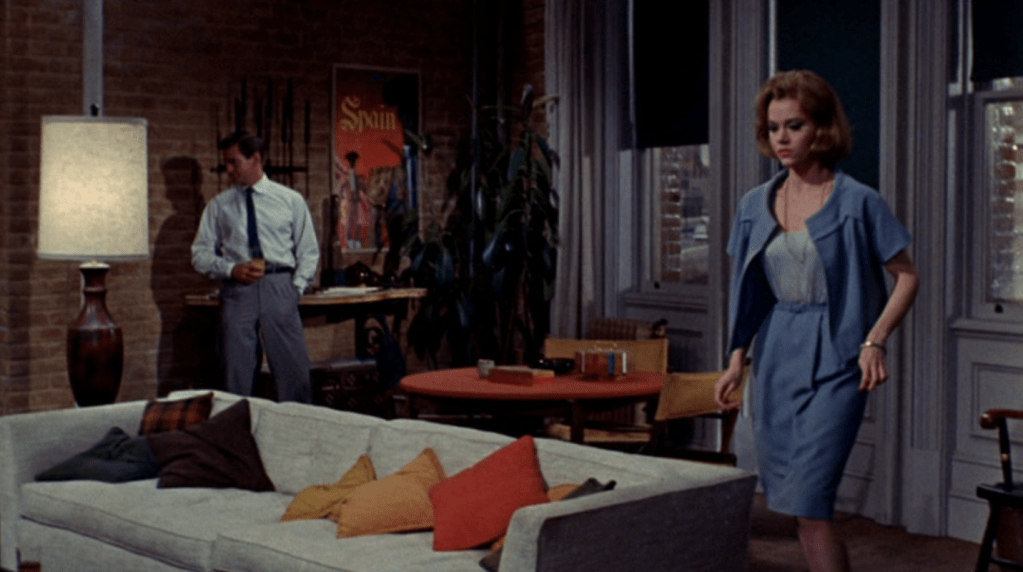 The most fascinating thing about Sunday in New York – aside from the apartment, of course – is the essence of the plot itself and its presentation of issues and concerns that are of their time. Right off the hop, something you may be less likely to find today is a 22-year-old virgin. That’s what Eileen is and, y’know what?, good for her. Rich Boy Russ wants to change that and has apparently put some pressure on Eileen to succumb. Again, good for her that she has rebuffed his advances and lammed it to her brother’s. But now she’s sad and laments the idea that this is what she must do when she dates a guy.
