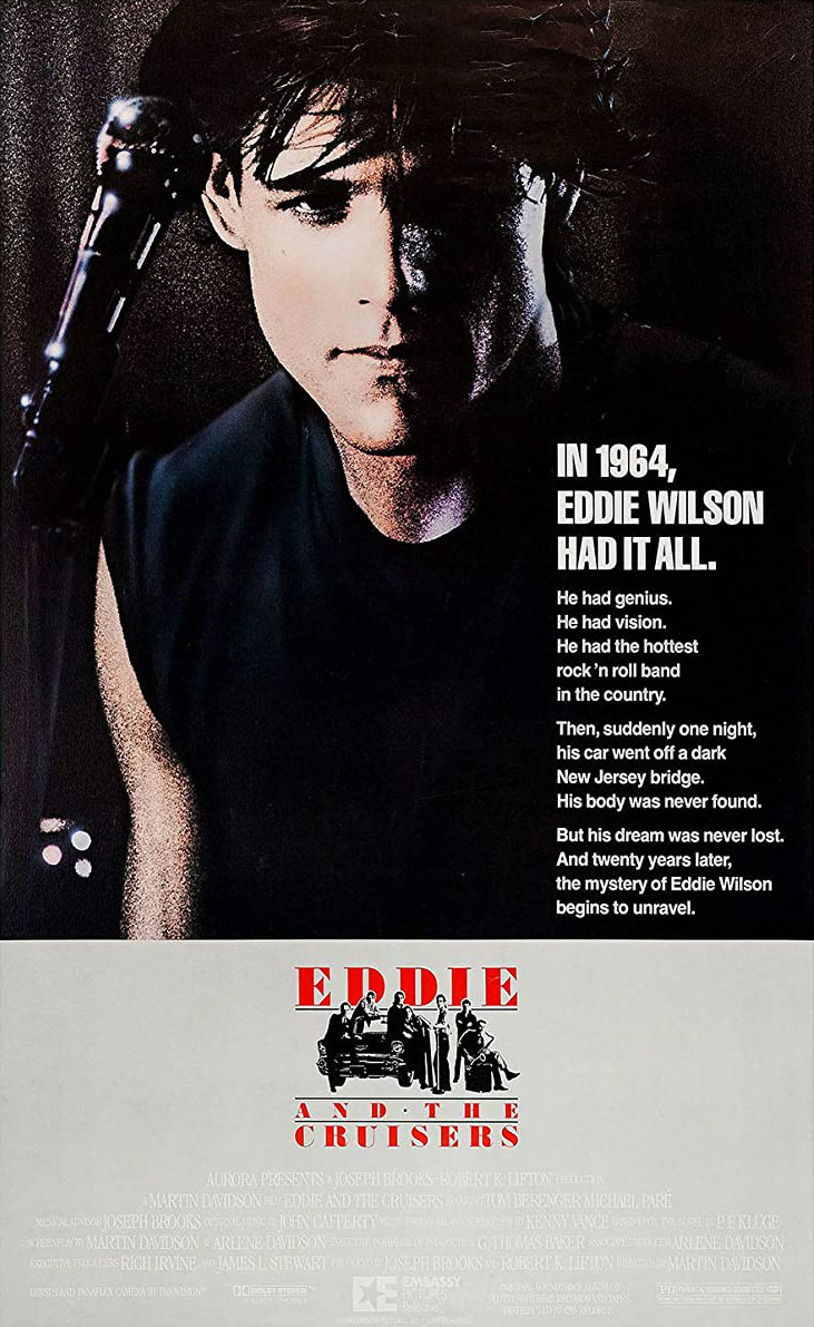 It seems that writer and director Martin Davidson – born 1939 in Brooklyn – is one of those filmmakers I often run across that got everything so very right only once and could never quite put it all together a second time. Eddie and the Cruisers is a film for the ages but Davidson never did scale the heights again. He does however have a couple of interesting credits that precede our film. Martin co-scripted and directed The Lords of Flatbush (1974), his Hollywood debut. A notable film that was released at a time when films and TV shows depicting the 1950’s were all the rage, this movie featured performances by young actors Sylvester Stallone and Henry Winkler. After this came 1978’s Almost Summer, a movie I only know about because of its soundtrack that I found on cassette back in the day that features music from Mike Love and his “band” Celebration. It is one of the few things Love has been able to do outside of the Beach Boys. Almost Summer, incidentally, was a Motown Production, the company’s only film to not feature blacks predominantly. Then came Martin Davidson’s divine inspiration.