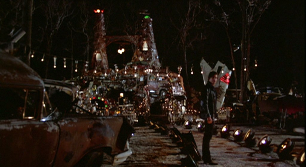 Palace Depression is used symbolically in Eddie and the Cruisers. Eddie takes Joann there when his world is falling apart. Eddie – a simple guy – has been hurt and rejected. He has been misunderstood and discarded yet again by the powers that be. Sitting in the midst of this junk yard Eddie tells Joann about the guy that used to own the place. He says “he actually believed that you could build a castle out of a bunch of junk. What a crock”. After a pause, it seems something has suddenly occurred to Eddie. “Holy shit”, he says, “what a phoney”. I’ve been robbed, Eddie realizes. I come from nothing. From nobody. I’m just some guy from Jersey, as Sal has just reminded him. But I always felt that I had beauty in me. I always felt that, against all the odds, if I got the chance, this beauty could flow out of me. I always thought that I could create a monument out of the trash I’ve been saddled with in life. Despite it all, I could create something great. I thought I had done that. But now I see it’s all come to nothing. Eddie gives up then and aligns himself with Palace Depression. Together, this pile of junk and I have created our own monument to nothing.
