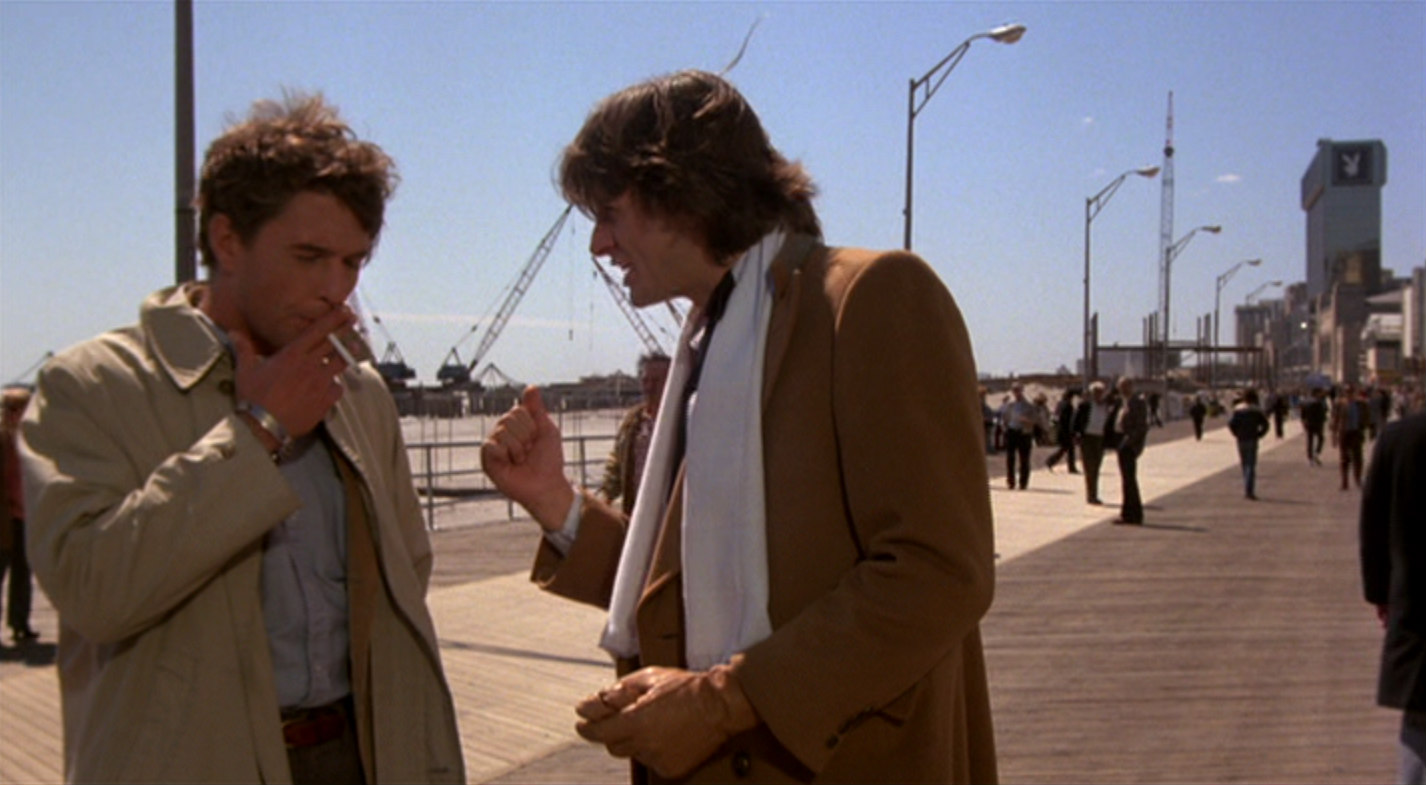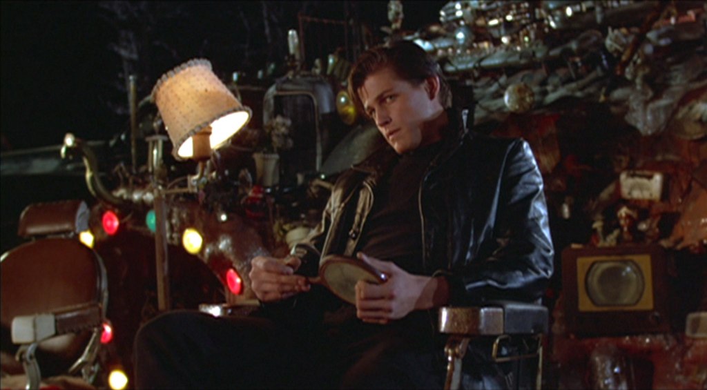 As I’ve said, the positive with the sequel is that it exists and at least presents one version of the later life of Eddie Wilson. The negatives, though, abound. The cast is…unsatisfactory. The look they decided on for “Joe West” aka Eddie Wilson is…not good. Most heretically though is they have appropriated a scene from the first film and presented it in the sequel in butchered form. In the first film, Eddie and Wordman talk on the beach. They use this scene in the second film but when they cut to what should be Wordman, we instead see Sal Amato sitting on a fake beach in a studio in Quebec somewhere. It’s terrible and sums up what’s wrong with the movie and brings up a pertinent point about the casting of the second film.