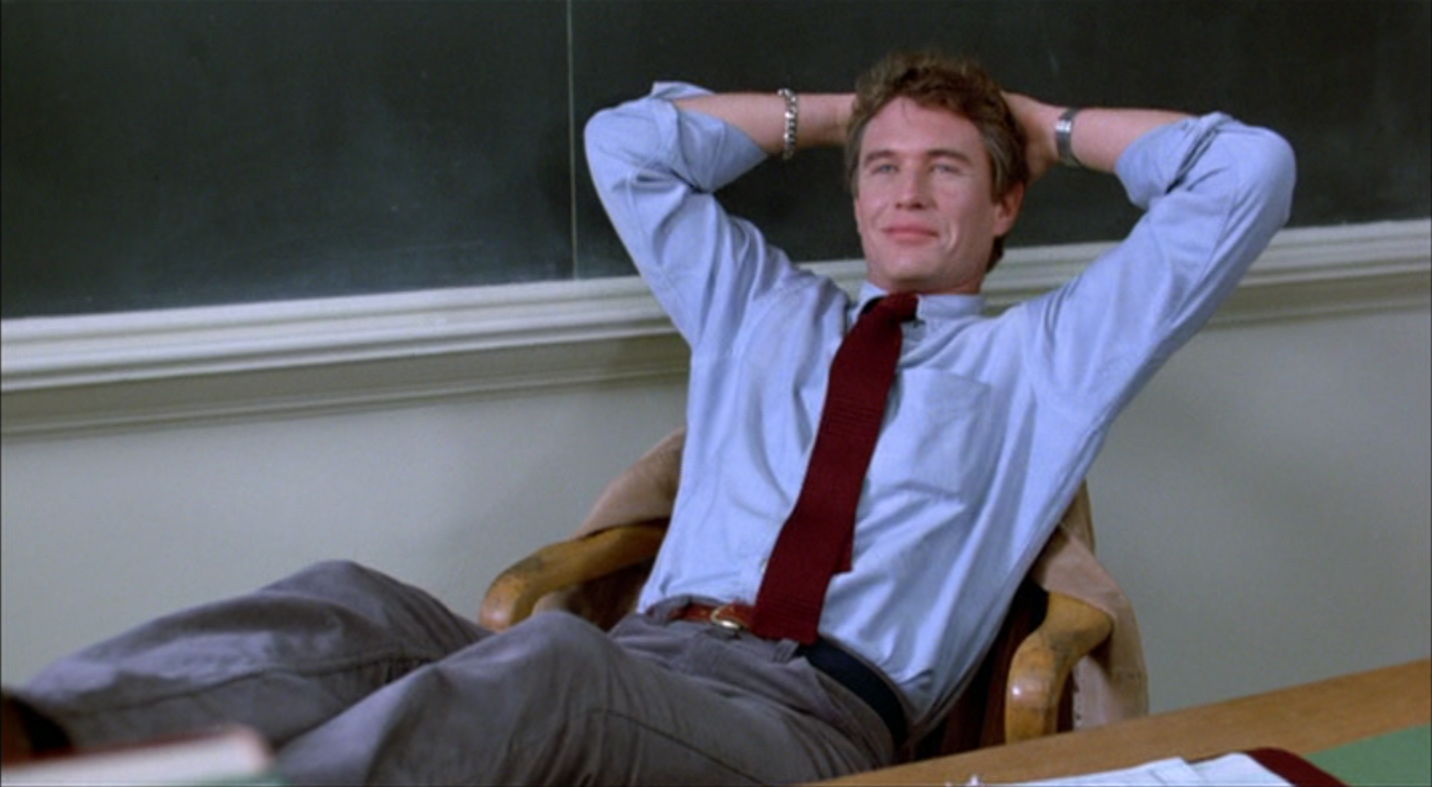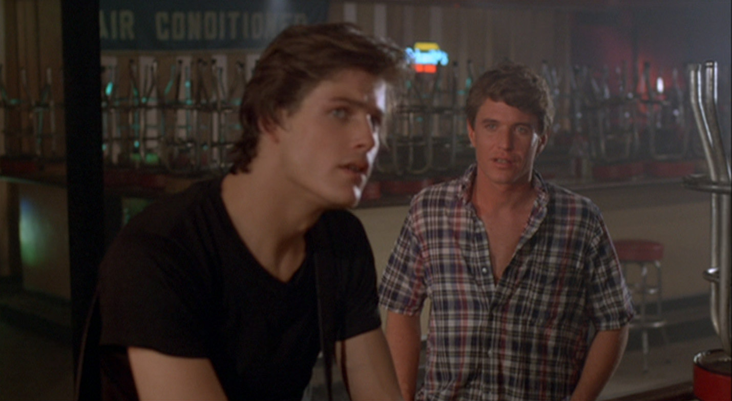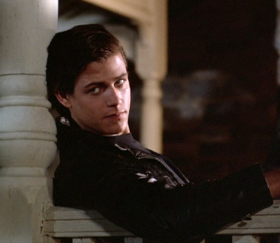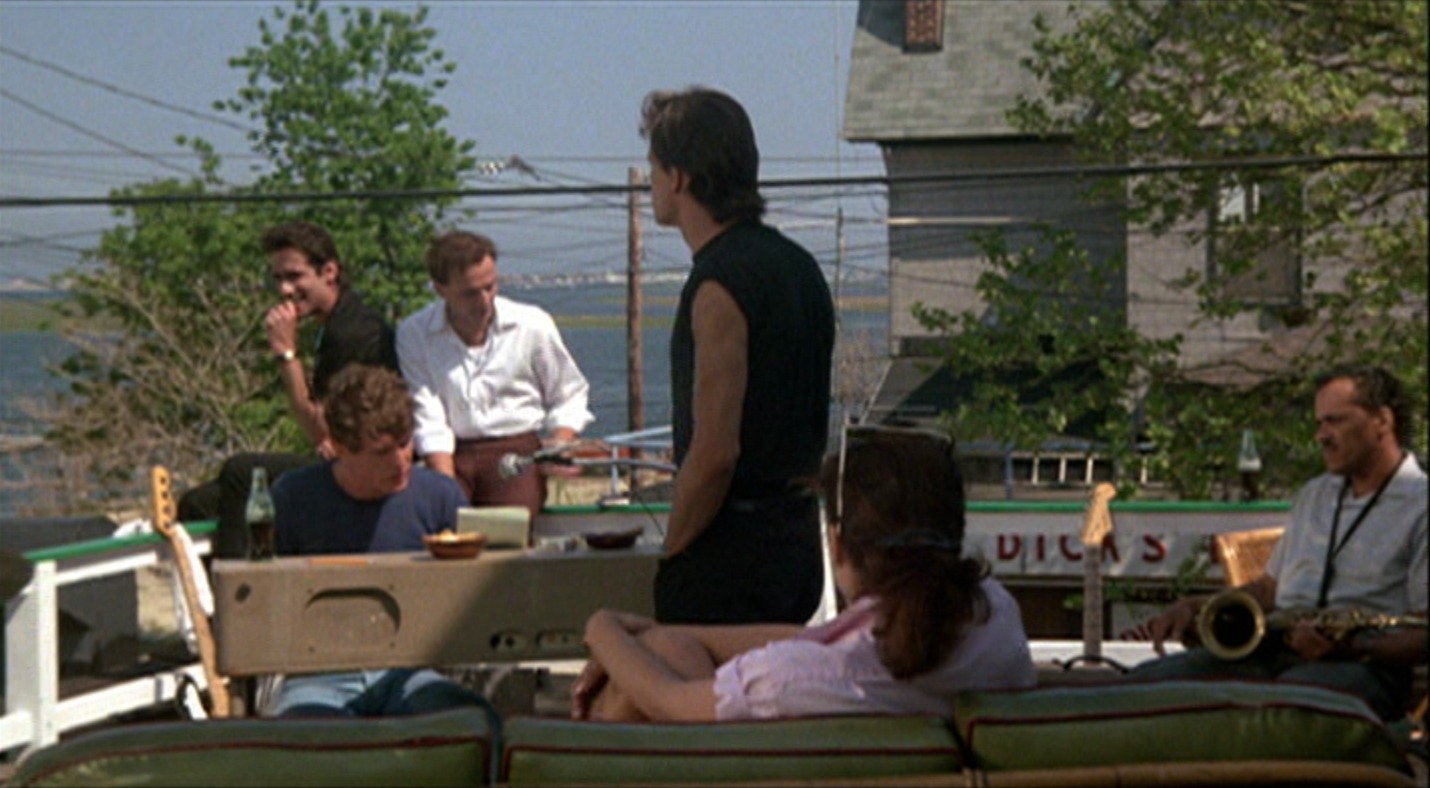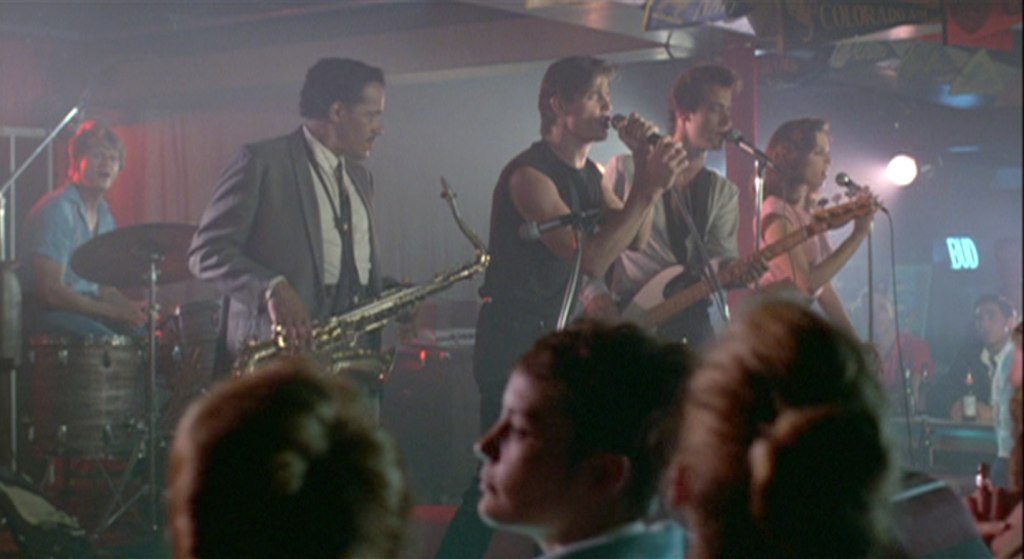 Frank shares stories with Maggie of writing the Cruisers’ song “On the Dark Side” and of the band’s successful stint at Tony Mart’s that long ago summer. He also tells Maggie about the time he talked the band into playing the preppy Benton College, Frank’s alma mater. While walking the grounds with Joann, Frank runs into an old friend, Keith (played by John Stockwell, Christine) and reassures Joann and the band that they need not feel inferior here. Eddie and Frank have a beef which leads to Eddie humiliating Wordman on stage that night. Later, Frank had wanted to quit the band but Eddie talked him out of it.