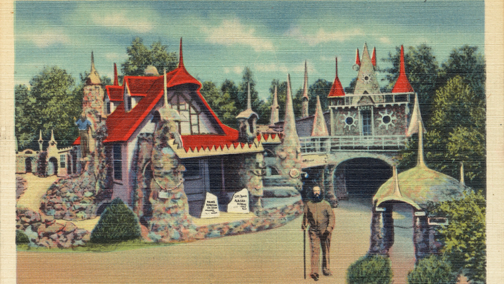 George Daynor was a publicity hound. After the former Alaskan gold miner lost his fortune in the Wall Street crash of 1929, he said that an angel guided him to Vineland, New Jersey and provided him with the plans for a monument to that which the Great Depression could never destroy. He called it Palace Depression and it was a building and grounds made entirely of junk. The eccentric Daynor died a pauper in 1964 and soon after a fire destroyed much of Palace Depression. In 1969, Vineland officials decided to tear it down but obstacles delayed its razing. Kevin Kirchner had toured Palace Depression – or the Palace of Depression – when it was owned by Daynor. In 1969, Kirchner found himself the head of Vineland’s licensing and inspections department and instead of authorizing its destruction, Mr. Kirchner was determined to restore the landmark. This restoration continues today, spearheaded by the next generation. See Kristian Kirchner’s The Palace of Depression Restoration Association’s Facebook page here.