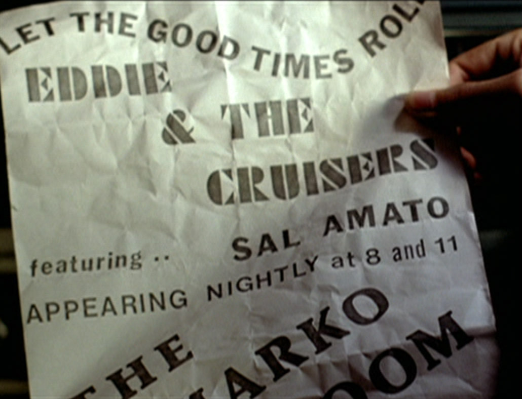 Eddie and the Cruisers is a crowd-pleasing film but it also sounds some deeper notes. Along with the Palace Depression analogy noted above, the Rimbaud angle of the screenplay is compellingly significant. It is exceedingly clever and resulted in me as an eleven-year-old knowing who Arthur Rimbaud was. I should add that I have also always known what a caesura is because of this movie. I have formed friendships based on mutual knowledge of the caesura. And the premise that Eddie was so disgusted by his rejection by Satin Records that he could possibly have discarded his life as a musician in exchange for simple anonymity is quite striking.