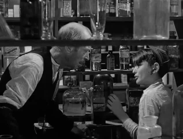 Handing the pills to George, Gower tells him to deliver them to his customers. But even George can tell that this medicine can be harmful to these people. He leaves but doesn’t deliver them. Upon returning, Gower is on the phone with the disgruntled customer. Warner’s slurring voice on the phone and his miffed blinking after he hangs up are harrowing to behold. He hauls George into the back room. Watching Gower slap George is uncomfortable to say the least. Equally compelling is Warner’s face and his embracing of George when he finds out the boy has just saved his professional career; his life. “I won’t ever tell anyone”, George says. What a scene.