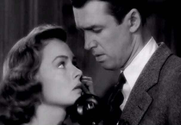 One night, George goes courting but acts rude to her. It’s comical how obnoxious he is and it’s equally comical how plain Mary’s mother makes it that she thinks George is not right for her girl. The phone rings while George is there. It’s Sam Wainwright (Albertson), their old buddy who is rich and who is Mrs. Hatch’s choice for her daughter. George and Mary both talk to Sam by putting their heads together and sharing the downstairs phone as “Mother’s on the extension” (“I am not!”). Sam is rambling on but George has ceased to hear. The scene with the two of them on the phone beggars description. He eventually breaks down – and it is a joy to behold. You wanna see acting? James Stewart depicts someone falling in love with deft precision. What you’re seeing is George’s whole life changing. As a youngster, I didn’t comprehend why he was so angry when he seemed to like Mary so much. It’s of course because his whole life is changing. He doesn’t want this but he can’t help it – he may not want it, but he can’t live without it. His “Oh, Mary!” is a submission, a sweet submission to a different kind of dream of life. A torrent of emotion in this scene. I would say they should show it in acting class so young people could aspire to it; but it’s so perfect, likely nascent actors would see it and be discouraged. Dang, I could never be that good. Ima be a plumber.