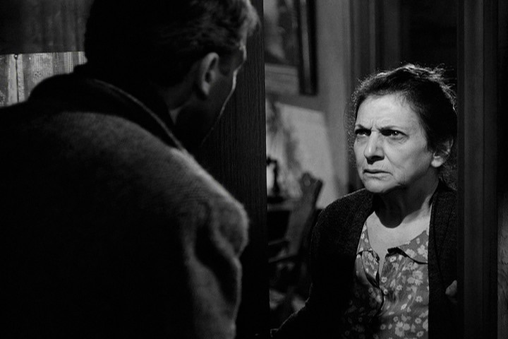 George assumes that his mother, of all people, will know him, take him in and calm his fears as she did when he was a child. Your father could be anyone; but your mother carried you inside of her and brought you forth into the world. Relationship fractures aside, there is no denying the poignancy of this fact. George knows this and heads to what he remembers as “home”. The scene with his Alternate Mother is harrowing and perhaps the truest Twilight Zone moment of this sometimes-discomfiting film. First of all is Beulah Bondi’s make-up. She looks tired, defeated, bereft of feeling. She looks warily at George and half-closes the door. And Bondi’s acting. The way she repeats “Mother” as if the very idea is distasteful to her. A child? Huh! A child may have softened my life and filled my old age with joy. But my only child drowned when he was quite young. There was no one there to save him that day.