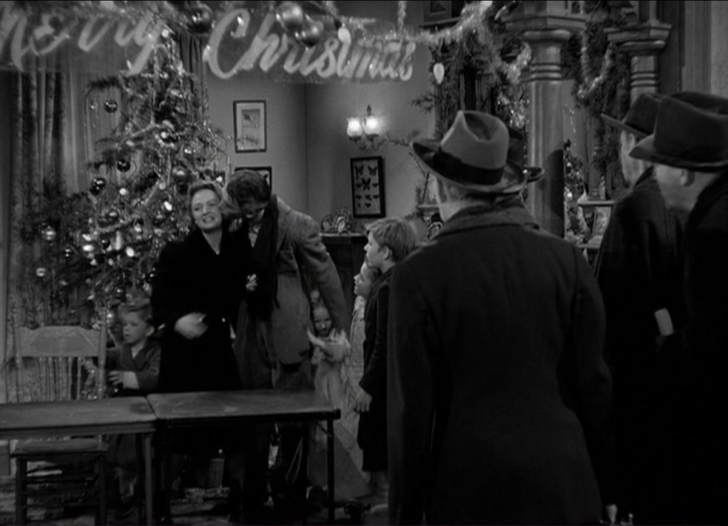 I’m telling you, without wives or women, the human race would disintegrate. Case in point, Mrs. Mary Bailey. George comes home and he is clearly not himself. Mary perceives this instantly. Something is definitely wrong. George is spiralling and Mary knows it. As he begins to lash out – confirming her fears – she protects her brood, gathering her children near to her and putting her arms around them. As George flees his family and his home, Mary’s mind begins to work. She knows something is wrong, George seems not able to deal with it so she must step up as an equal partner in this union. Though she feels turmoil gripping her, she can still spell “frankincense”. She heads out into the town to discover what is wrong, which – think about it – must have entailed going to Uncle Billy’s house where he is a wreck and extracting from him what has happened. Thinking fast amidst this chaos, she visits a few other important townspeople and she sets George’s rescue in motion. When George returns after having been shown the light by Clarence, he is delirious with joy and oblivious to anything that is not Mary. Watch how he continues to kiss her cheek enraptured. Meanwhile, she eagerly watches the door awaiting the miracle she has orchestrated. “Mary did it, George!”, Uncle Billy later says, overcome with emotion. We have seen intense darkness come over George and all of Bedford Falls. This darkness has been dispelled by Mary Bailey; woman, wife, mother, hero.
