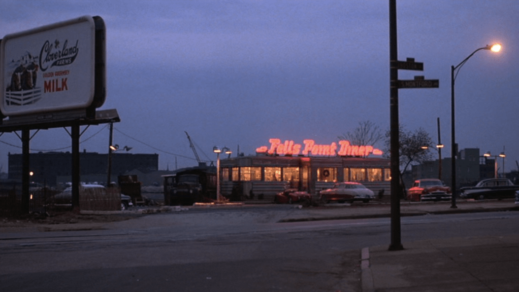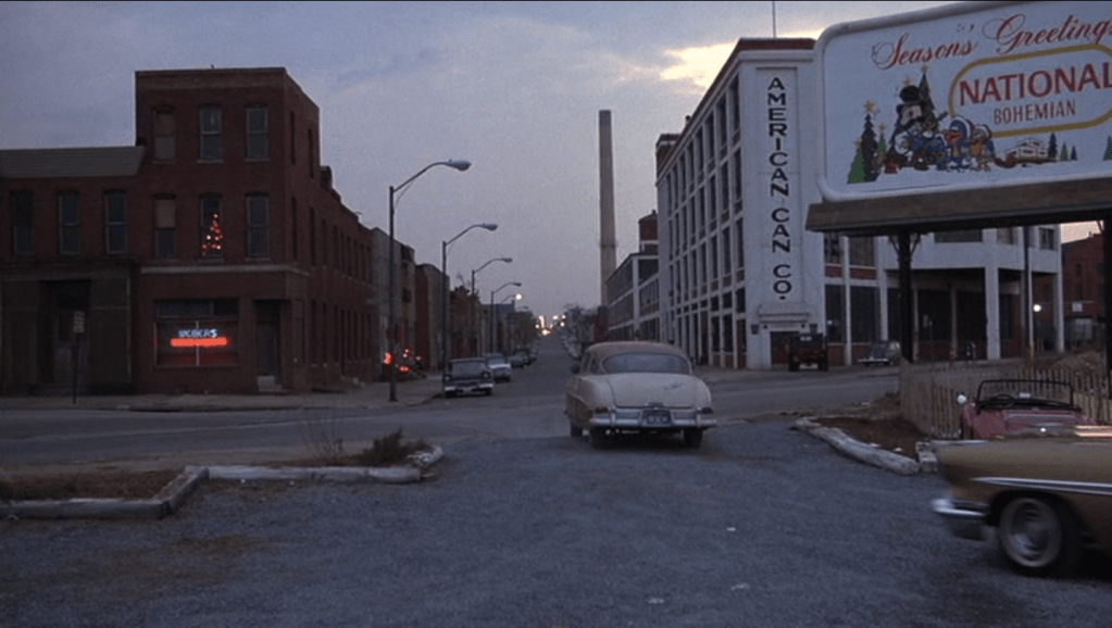 Ascertaining the exact location where “Fells Point Diner” stood for filming took some work. Judging by the street signs and by doing some comparisons between the film and Google Maps, I’ve discovered the following. In a scene in the film, you can see two street signs outside the diner. They read Boston and S. Montford. Going by this, I assumed that is where filming took place, which is partly true. But I also learned about American Can Company. You can see their building plainly in the film. The building today now bears the name “The Can Company” and it is on Hudson St. This confused me at first until I realized a geographical fact. Both S. Montford and Hudson basically meet at Boston Street. After much investigation, I feel I can somewhat accurately pinpoint where the placed the diner. Unsurprisingly, the area has evolved much in the last forty years.