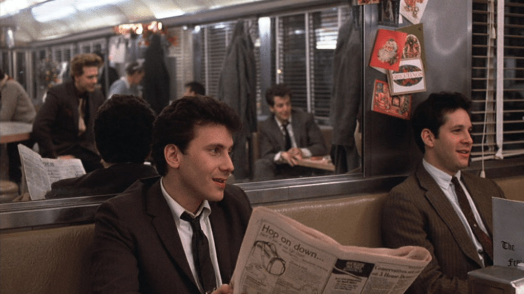 Diner was the start of Barry Levinson’s career as a writer and director of successful films, many of which I have loved. His next as director was The Natural starring Robert Redford as Roy Hobbs. Then in ’87, he wrote and directed the second of his four “Baltimore films”, Tin Men. While not a sequel, it does feature Michael Tucker as Bagel and guys hanging out at a diner. It is more of Levinson’s reminiscences of his hometown. This was followed by Avalon in 1990 starring Aidan Quinn and Liberty Heights in 1999 with Adrien Brody.