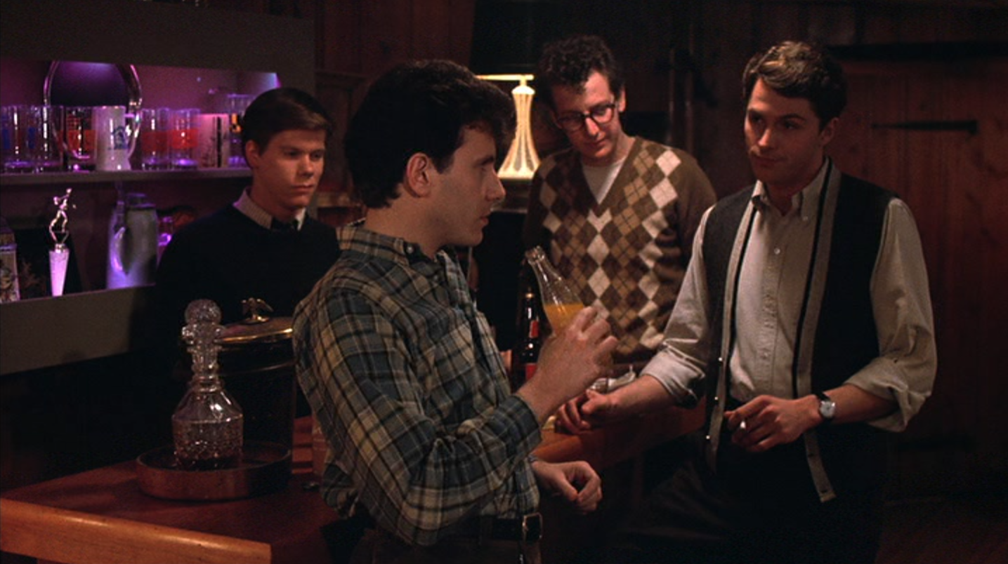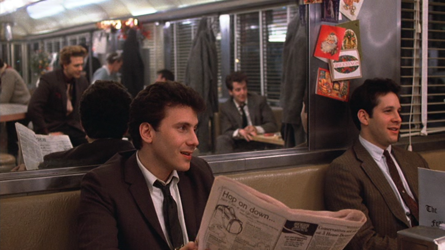 It is Christmas Night in Baltimore, 1959, and five best friends are at a dance. Modell (Reiser) is looking for Boogie (Rourke). Apparently, a drunken Fenwick (Bacon) is downstairs punching out windows. Boogie talks him down and the gang heads for their hang out, Fells* Point Diner. Shrevie (Stern) drops his wife, Beth (Barkin), off at home and joins the gang in a booth. There, Eddie (Guttenberg) and Modell debate between Sinatra and Mathis for the best make-out music and Boogie talks to the guys about his risky $2000 basketball bet and about his impending date with Carol Heathrow (Blonigan). Eddie and Modell go home and the other three head to the train station.