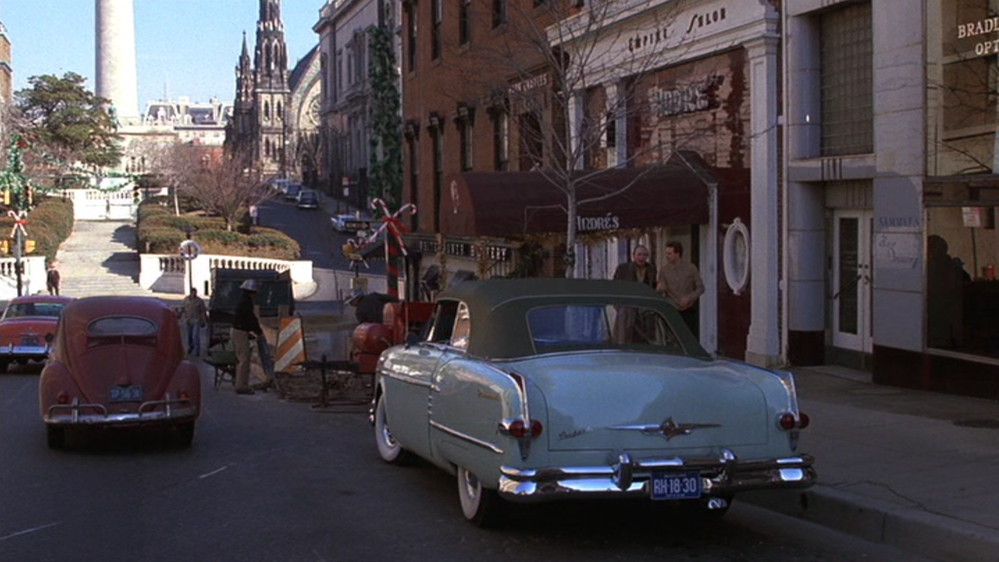 Filming took place for six weeks in March and April of 1981 in and around Baltimore. In “garden suburb” Roland Park, Fenwick takes to hanging out at the Nativity scene set up at the Roland Park Presbyterian Church on Roland Avenue. The distinctive building across the street is the world’s first shopping mall, the Roland Park Shopping Center built in 1895.