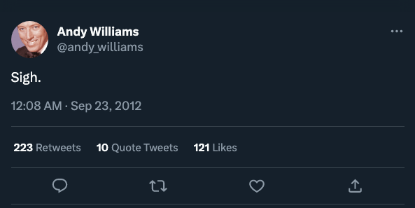 In his own unassuming, quiet way, Andy Williams forged a formidable career. He gave the world the definitive version of the delightful “Moon River” and gifted us all with his wonderful Christmas music performed on record, on television and on stage. He was the first TV host for the Golden Globes and for the Grammys and he released scores of wonderful records on Columbia. He was a patron to many including the Osmond family and the Lennon Sisters and was the first headliner at Caesar’s Palace. He put his own stamp on the music city of the Ozarks with his theatre in Branson. And he did all this while remaining a down home country boy. He left behind for all of us a legacy of decency and wonderful music.
